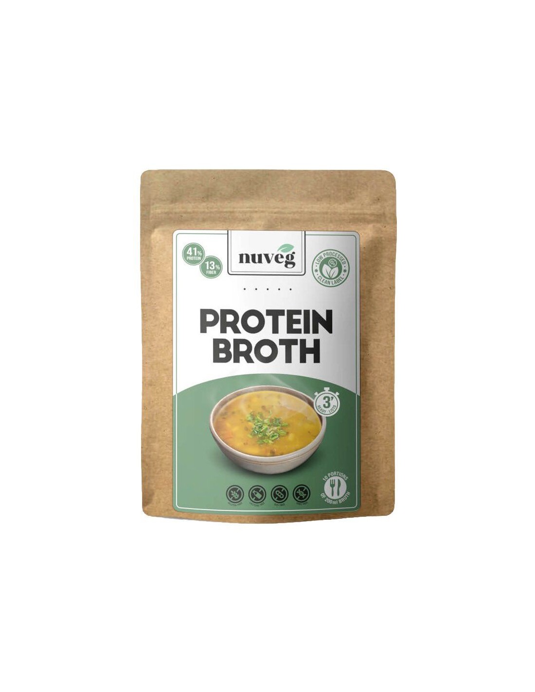NUVEGEl caldo Proteico nutricional de Nuveg es un caldo deshidratado que se prepara de manera fácil, mezclando el preparado en polvo con agua a punto de ebullición, y que aporta una cantidad excepcional de nutrientes en su forma biodisponible. Elevado contenido de vitaminas y minerales esenciales, así como de proteínas completas. Es apto para personas veganas, de muy bajo procesado, sin gluten, lactosa, sin soja, sin transgénicos, ni otros alérgenos y Clean Label.