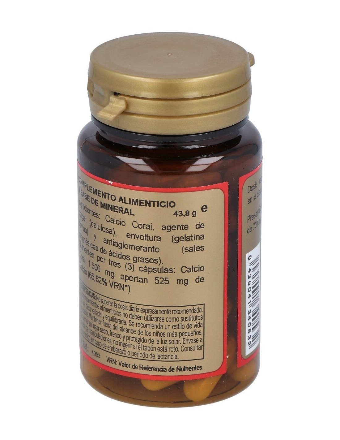 Complemento alimenticio en forma de cápsula, elaborado a base calcio coralino, una sal de calcio derivada de los arrecifes de coral fosilizados, que aporta todos los minerales necesarios para el organismo. Rico en calcio fácilmente absorbible, contribuye al mantenimiento normal de huesos, dientes y músculos.