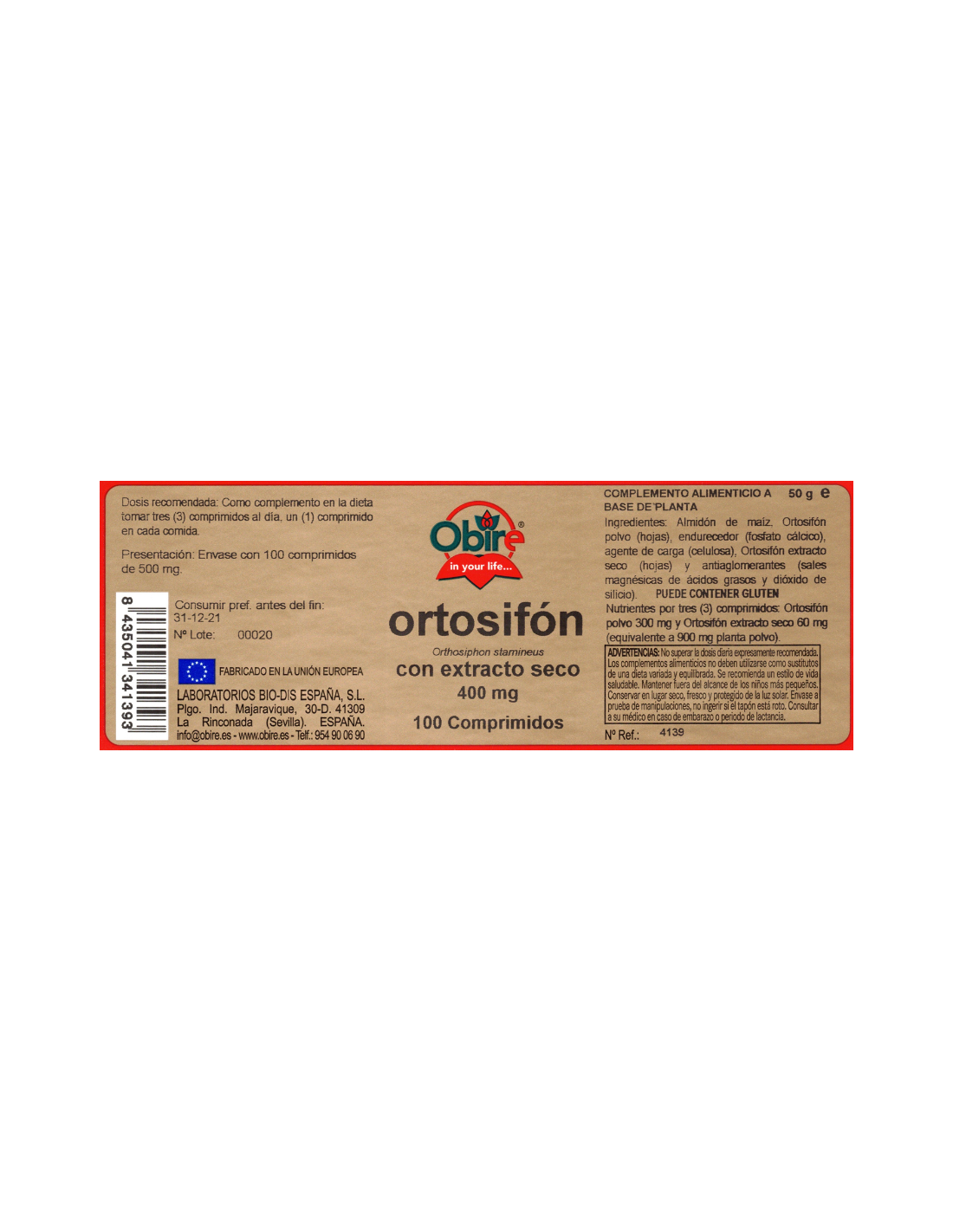 OBIREComplemento alimenticio a base de ortosifón. Complemento alimenticio a base de ortosifón.