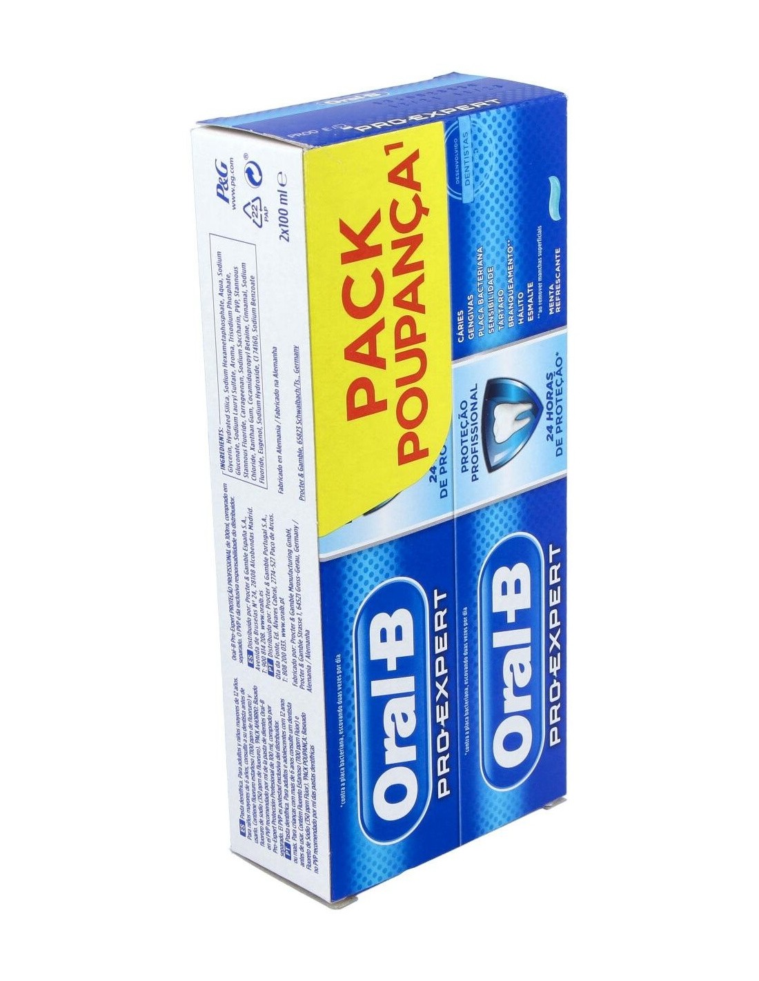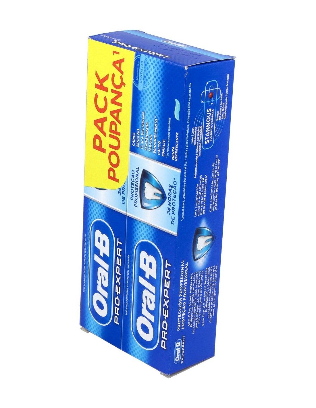 Oral-B Pro Expert profesional Pasta 2x100ml (75 ml + 25 ml) es un dúo de dentífricos enriquecido con fluoruro de estaño y cristales limpiadores activos que contribuye a proteger la estabilidad de las encías, reduciendo la placa bacteriana y contribuyendo a conseguir un aliento más fresco.