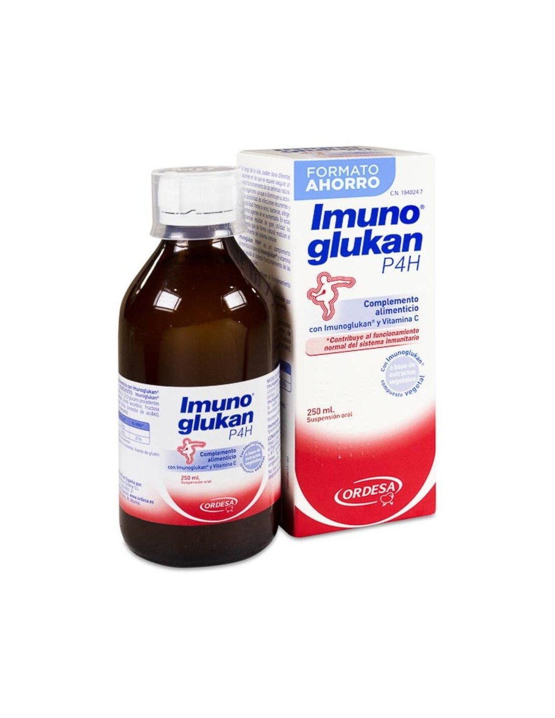 Imunoglukan® (polisacaridos de beta-1,3/1,6-D-glucano procedentes de Pleurotus ostreatus), Ácido ascórbico, Fructosa (edulcorante), Ácido cítrico (corrector de acidez), Sorbato potásico (conservante).