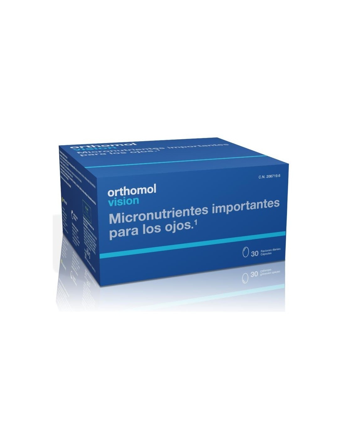 Complemento alimenticio con micronutrientes importantes para los ojos: Vitamina A, Riboflavina (vitamina B2), Zinc y Ácido graso omega-3 DHA que contribuyen al mantenimiento de la visión en condiciones normales. Vitamina C y E, Zinc y Selenio que ayudan a la protección de las células frente al daño oxidativo. Tiamina (vitamina B1) que contribuye al metabolismo energético normal. Tiamina (vitamina B1), Riboflavina (vitamina B2), Vitamina B6, B12, C, Biotina y Niacina que contribuyen al funcionamiento normal del sistema nervioso (incluyendo el nervio óptico).