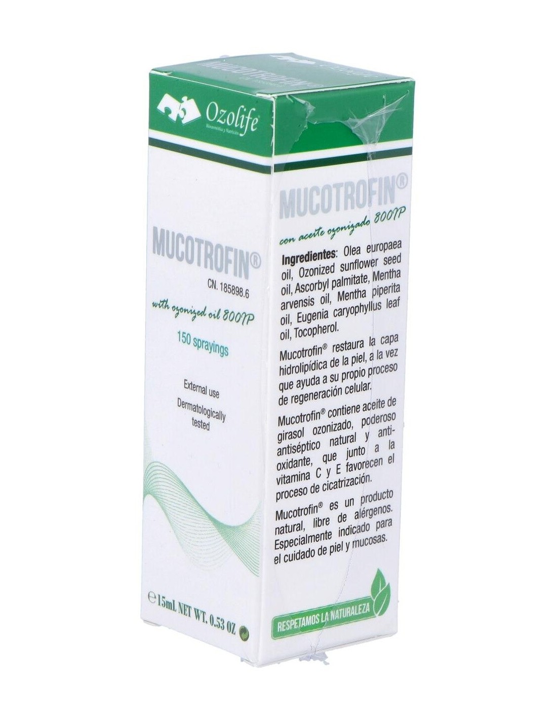 El aceite ozonizado de Mucotrofin es una fórmula natural que contiene aceite de girasol ozonizado y otros componentes de origen natural que protege la mucosa oral y las encías. Brinda una acción antiséptica, restaura la capa hidrolipídica de la piel y ayuda al proceso de regeneración celular para la cicatrización.
