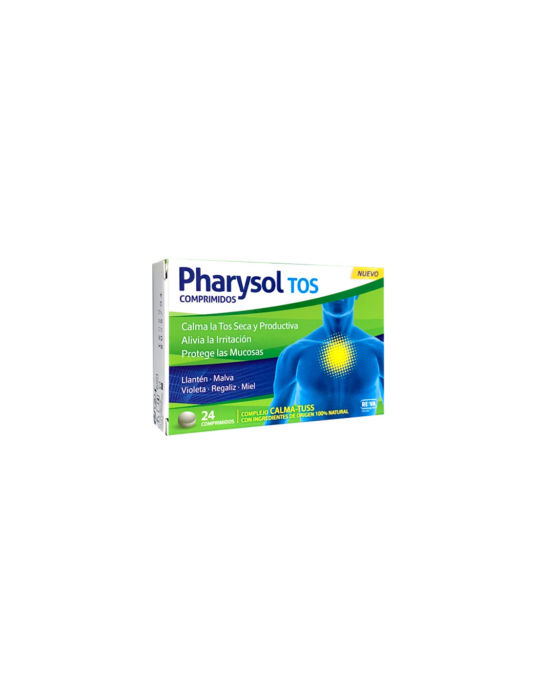 PHARYSOLComprimidos para chupar formulados con extractos naturales de Plantago Major, Malva, Viola tricolor, Regaliz y Llantén, ingredientes de origen 100% natural que pueden ser de utilidad en caso de tos seca y productiva y mucosidad.
