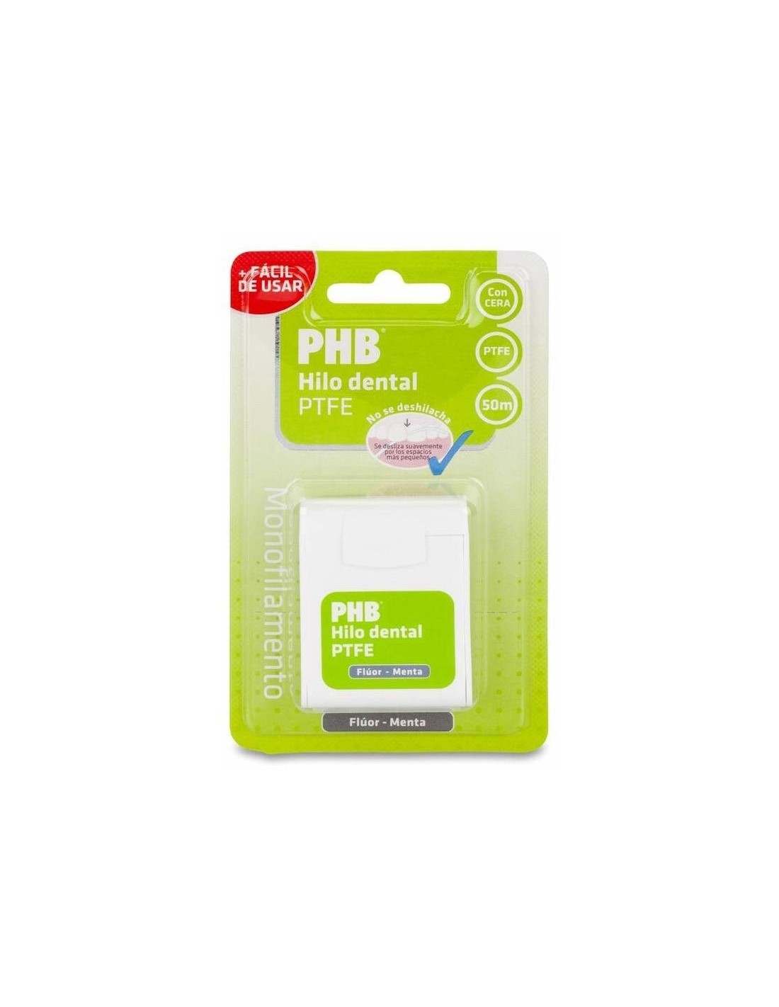 PHBEstá formado por un único Filamento, gracias a ello no se deshilacha entre los dientes. Evita el riesgo de cortes en las encías y se desliza entre los espacios más estrechos ofreciendo una óptima limpieza de la forma más fácil.