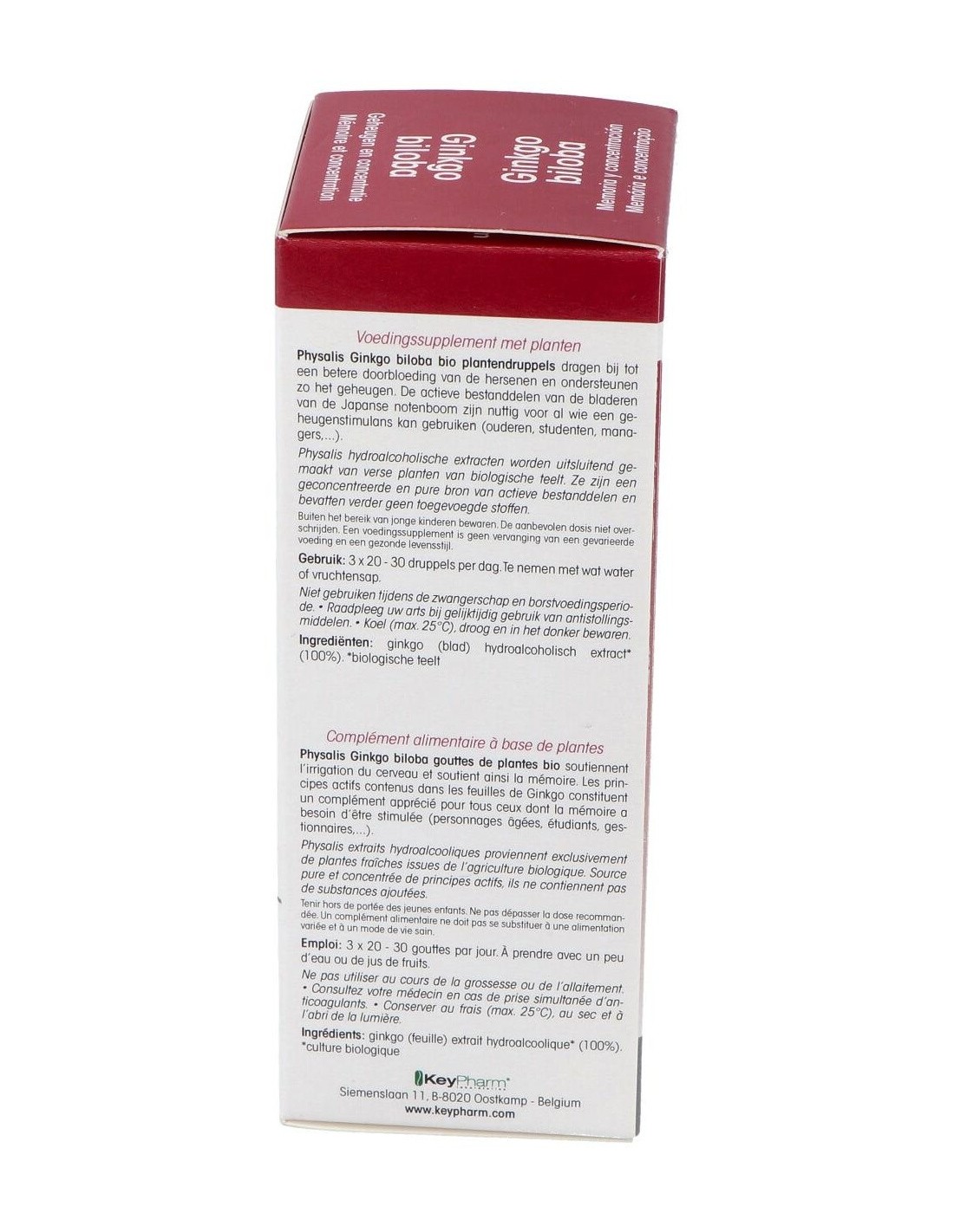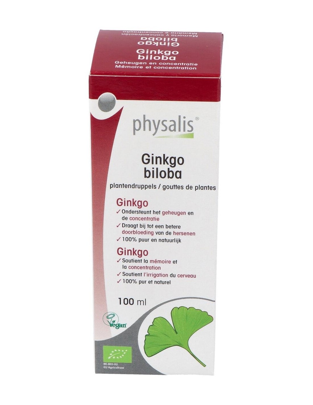 Complemento alimenticio a base de plantas que apoya al riego cerebral y mantiene así la memoria. Los principios activos presentes en las hojas de ginkgo constituyen un complemento apropiado para todos aquellos en los que la memoria necesita ser estimulada. (personas mayores, estudiantes).