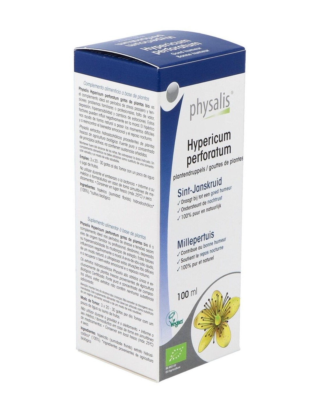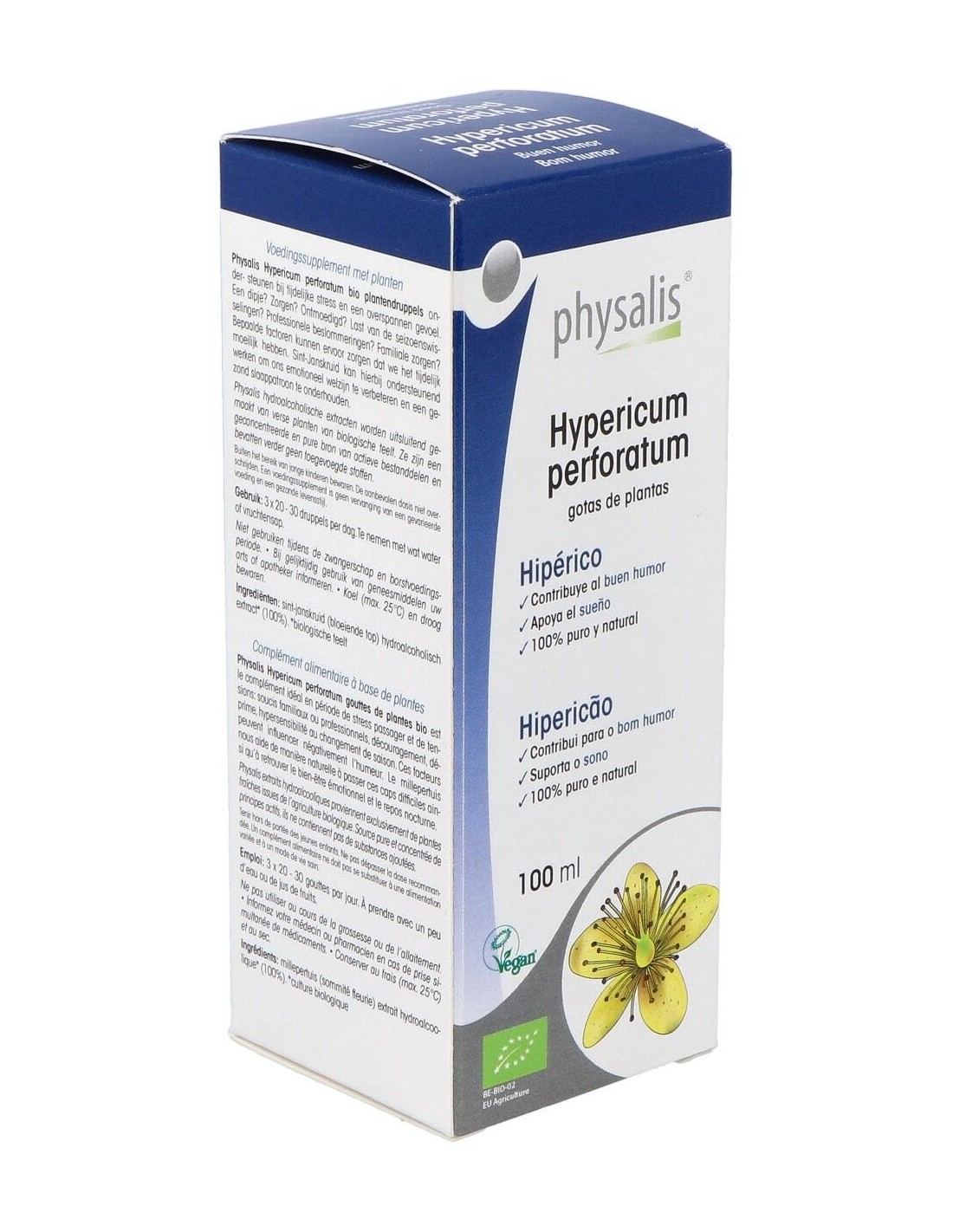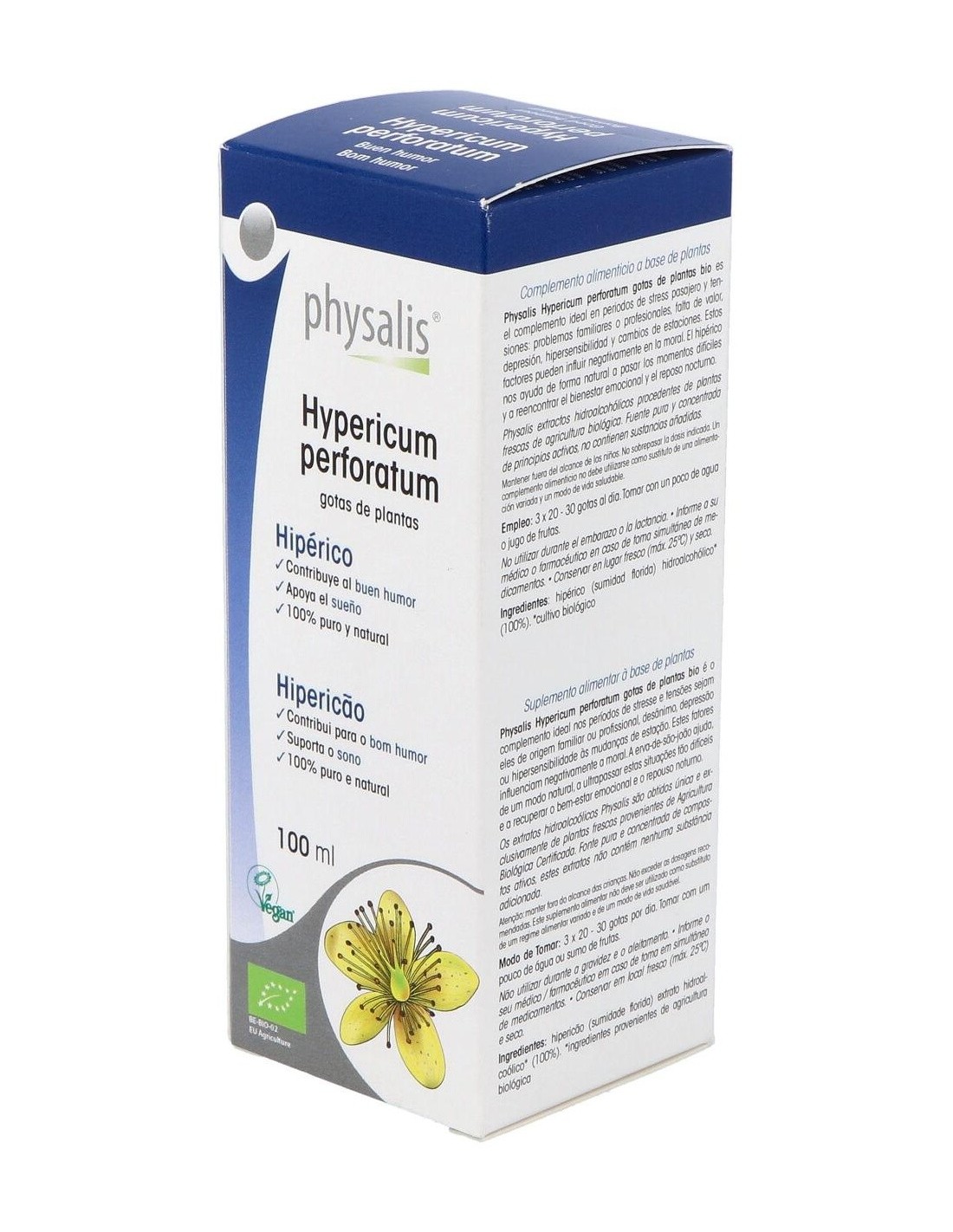 PHYSALISComplemento alimenticio a base de plantas ideal en periodos de estrés pasajero y tensiones: problemas familiares o profesionales, falta de valor, depresión, hipersensibilidad y cambios de estaciones. El hipérico ayuda de forma natural a pasar los momentos difíciles y a reencontrar el bienestar emocional y el reposo nocturno.