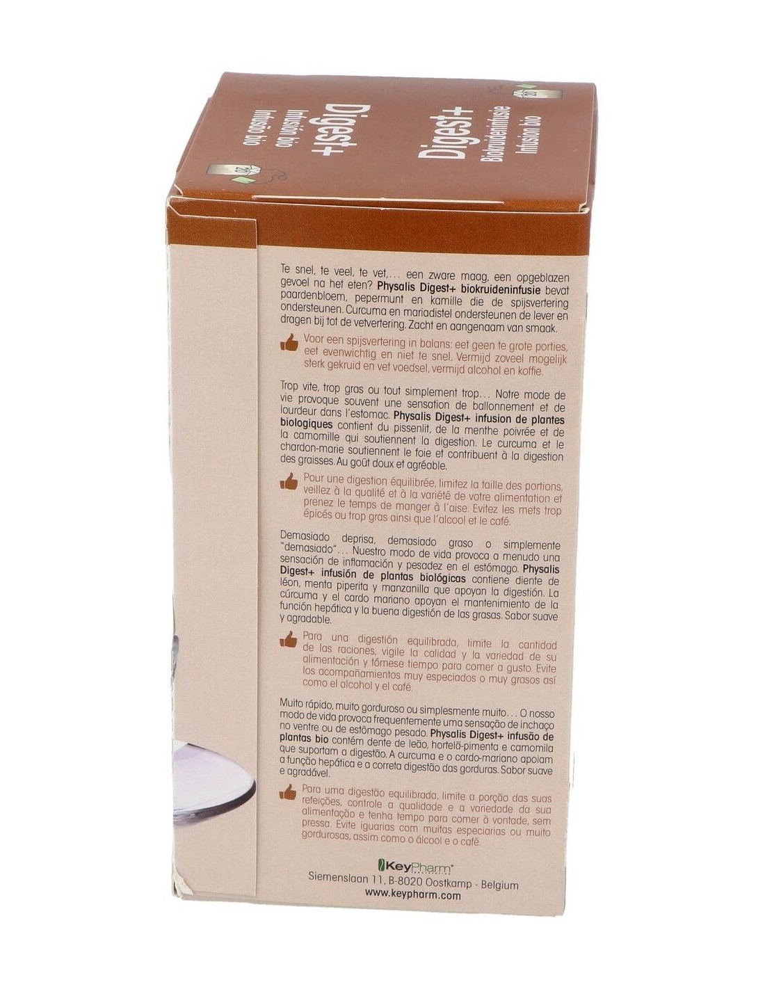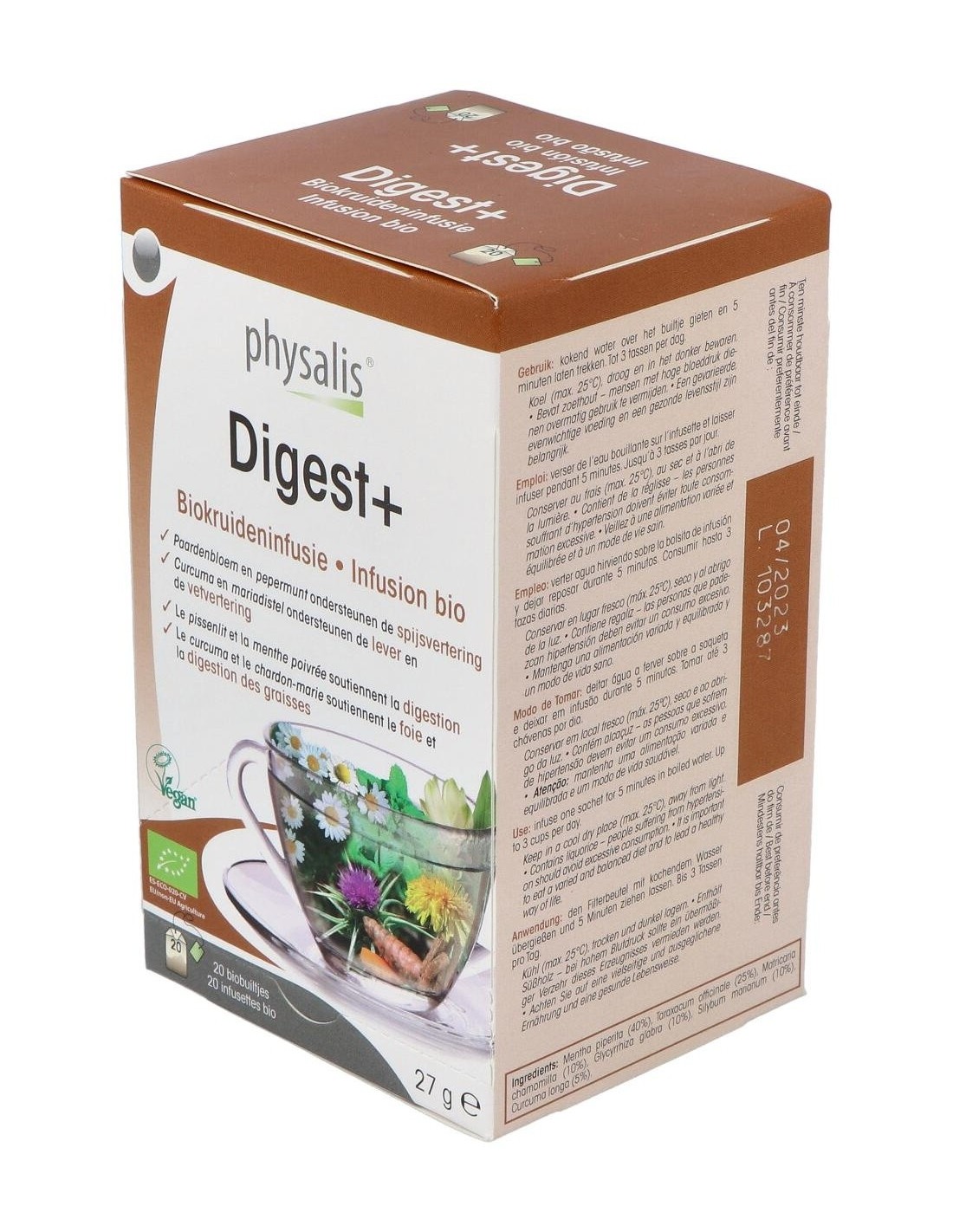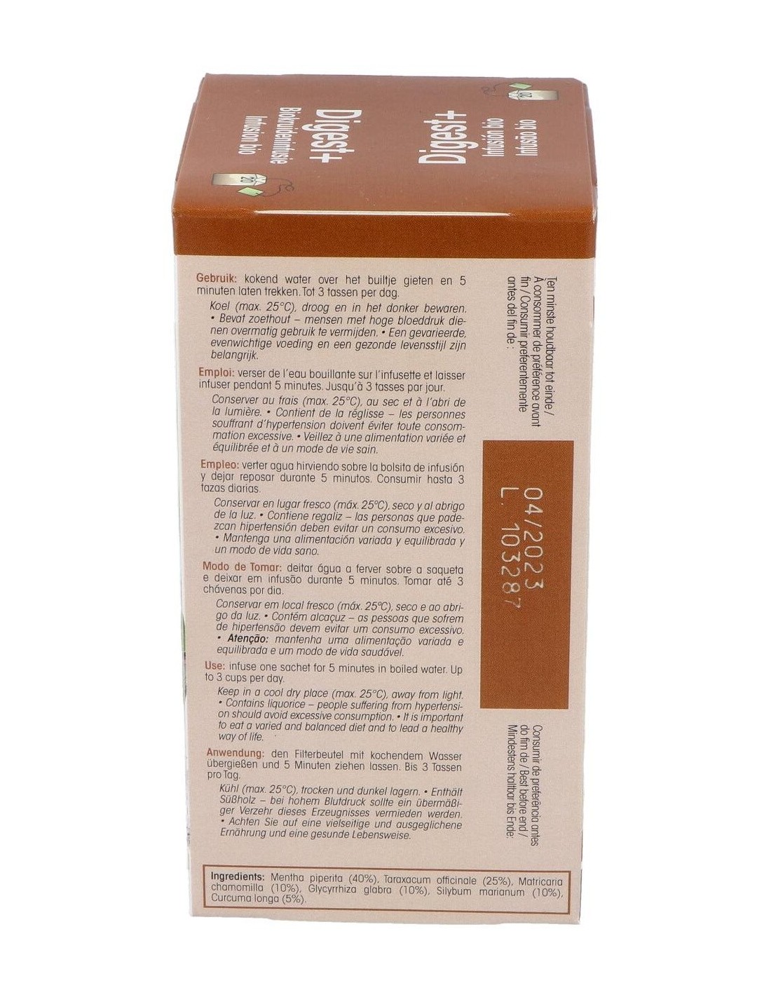 Infusión de plantas biológicas contiene diente de león, menta piperita y manzanilla que apoyan la digestión. La cúrcuma y el cardo mariano apoyan el mantenimiento de la función hepática y la buena digestión de las grasas. Sabor suave y agradable.