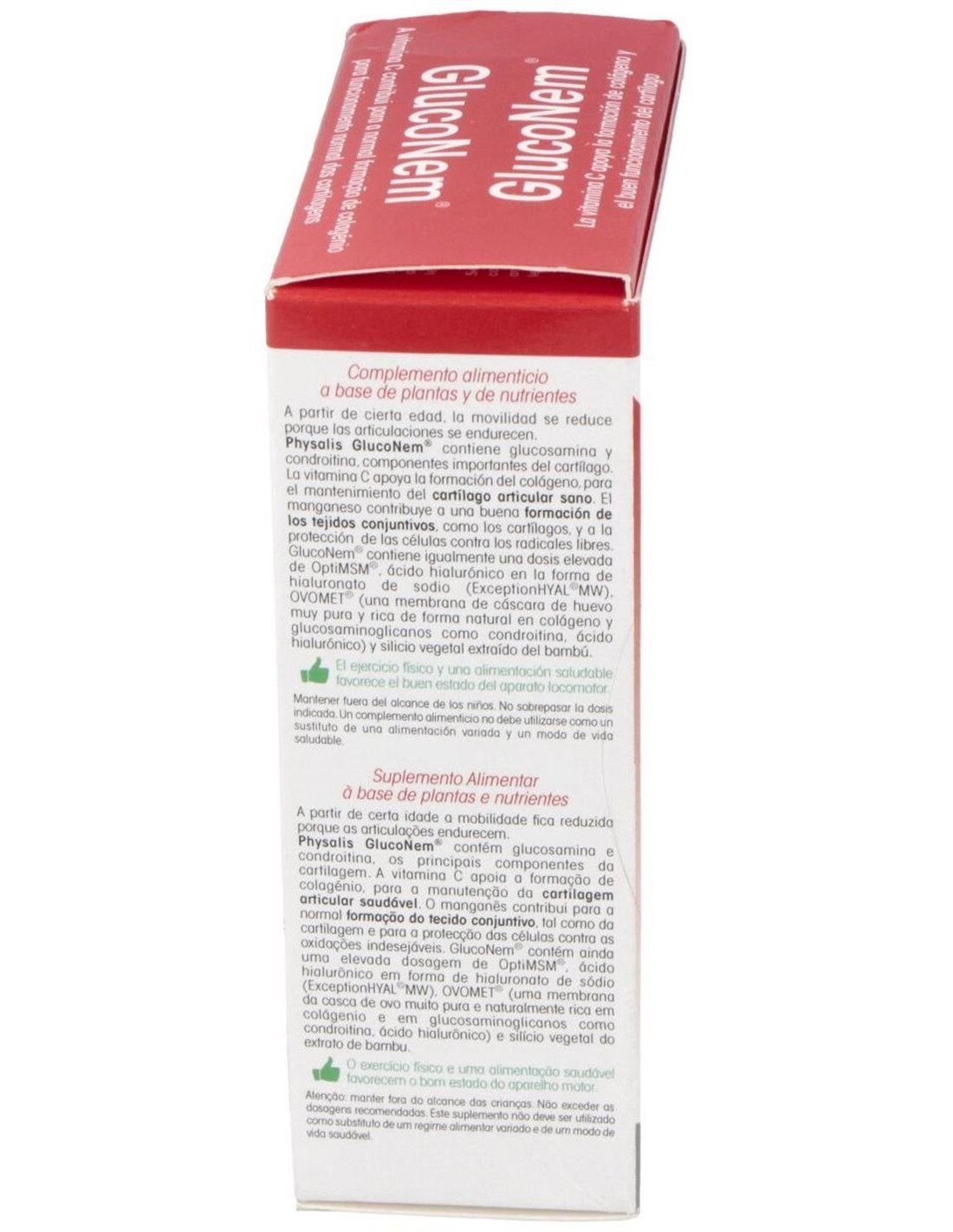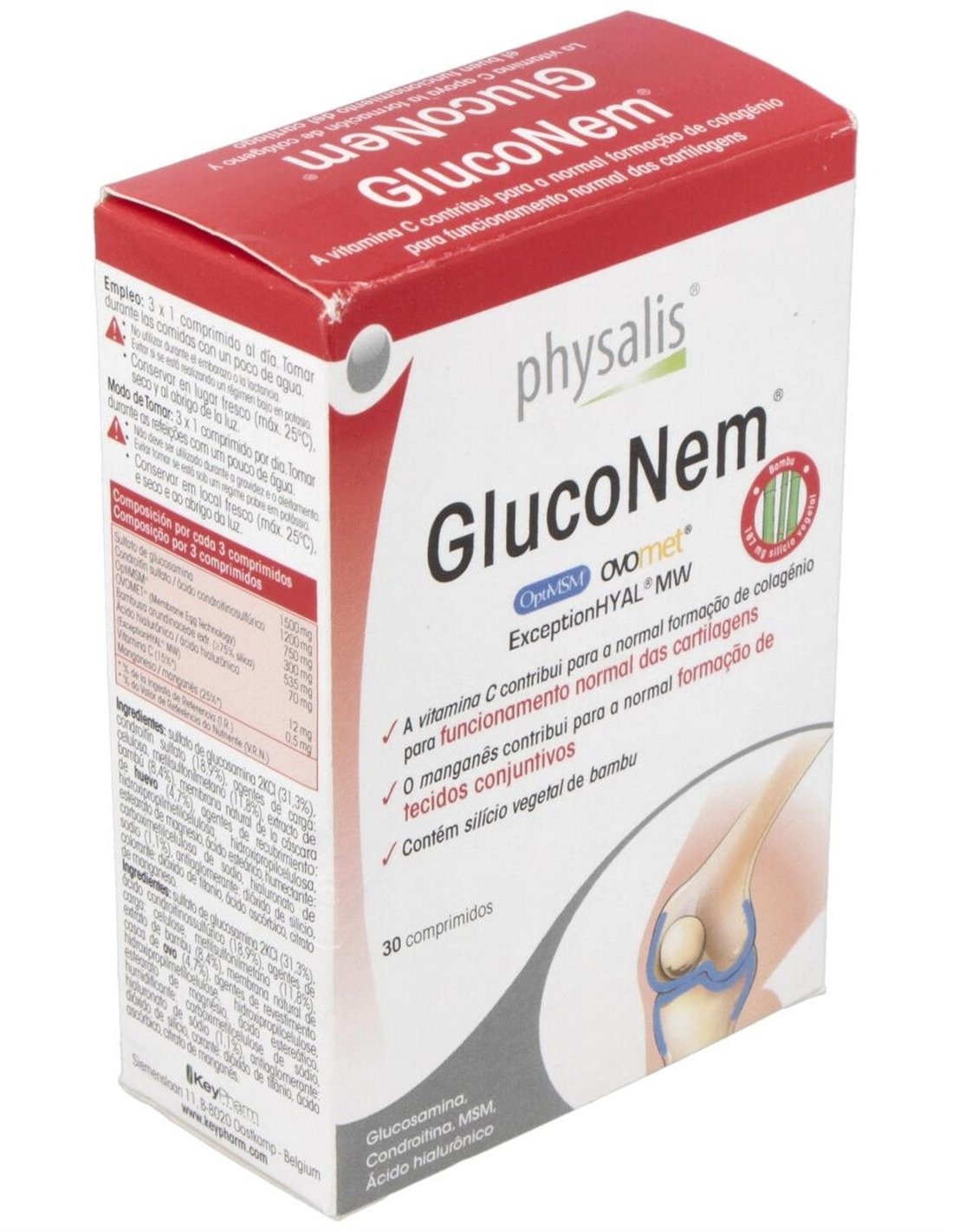 Contiene glucosamina y condroitina, componentes importantes del cartílago. La vitamina C apoya la formación del colágeno, para el mantenimiento del cartílago articular sano. El manganeso contribuye a una buena formación de los tejidos conjuntivos, como los cartílagos, y a la protección de las células contra los radicales libres. GlucoNem® contiene igualmente una dosis elevada de OptiMSM®, ácido hialurónico en la forma de hialuronato de sodio (ExceptionHYAL®MW), OVOMET® (una membrana de cáscara de huevo muy pura y rica de forma natural en colágeno y glucosaminoglicanos como condroitina, ácido hialurónico) y silicio orgánico extraído del bambú.