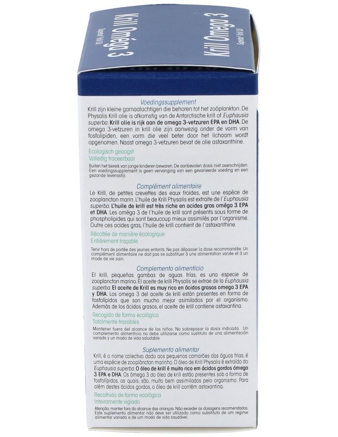 Complemento alimenticio a base de krill. Estas pequeñas gambas de aguas frías, son una especie de zooplancton marino que ayuda a mejorar los lípidos en sangre. Contribuyendo a mejorar la salud del corazón, y del sistema nervioso. Su alto contenido en Omega-3 ayuda a mejorar la concentración y la memoria.