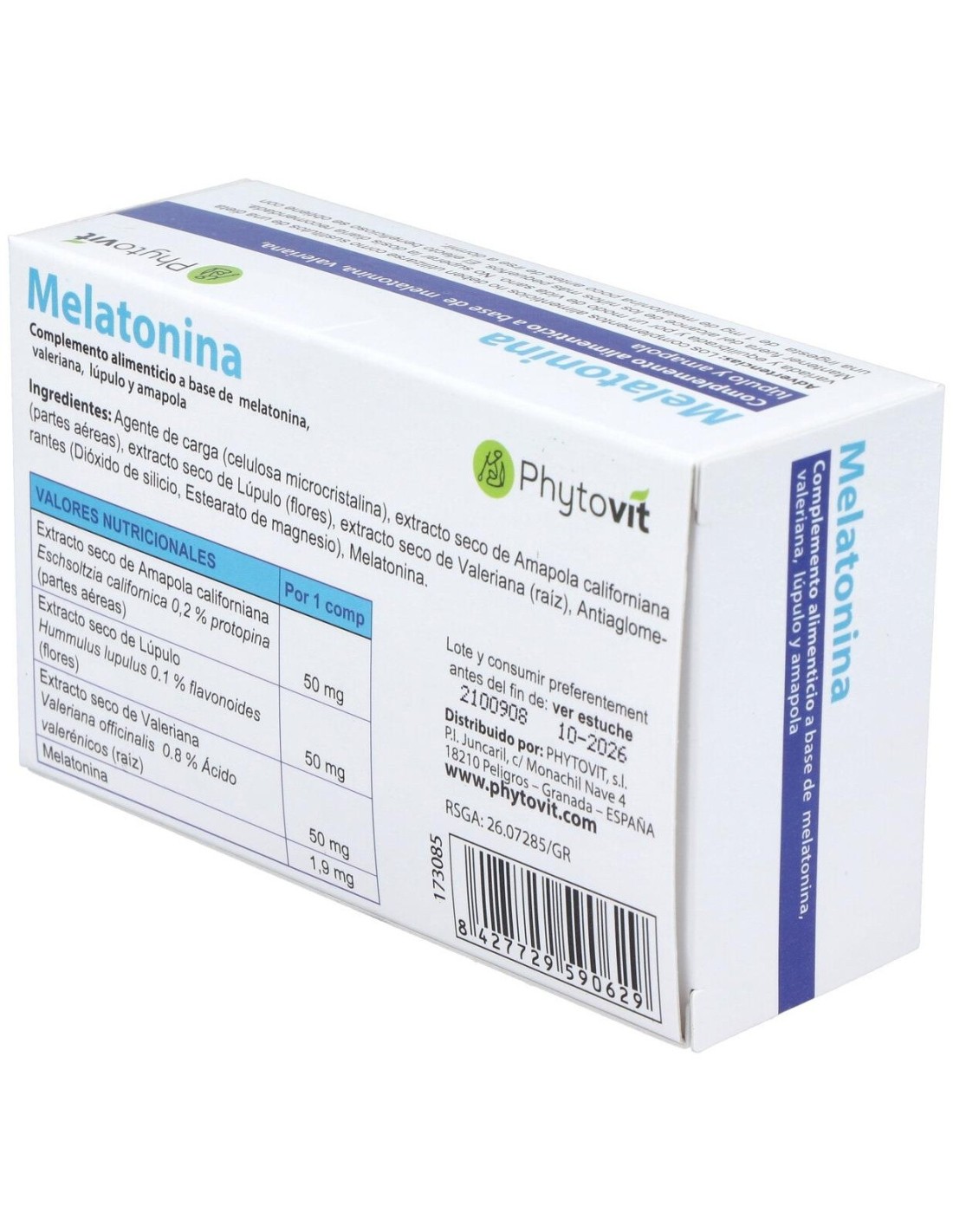 Melatonina (1,90mg), Extracto Seco De Valeriana Raíz (50mg), Extracto Seco De Lúpulo Inflorescencia (50mg), Extracto Seco De Amapola Sumidad Florida (50mg).