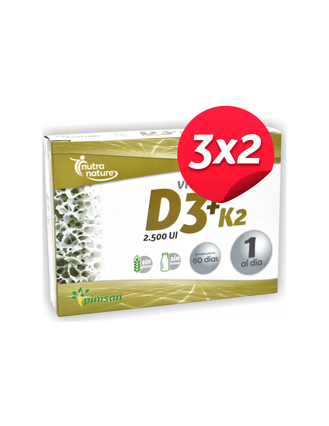 Pack 3x2 Vitaminas D3+K2, 60 Caps. de Pinisan