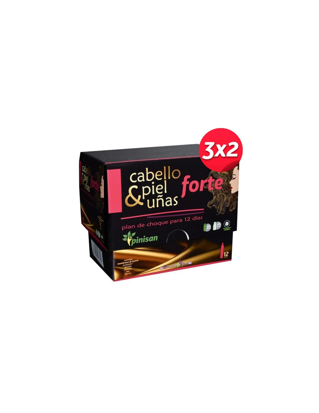 Pack 3x2 Cabello-Piel & Uñas Forte, Beautyline, 12 Viales de Pinisan