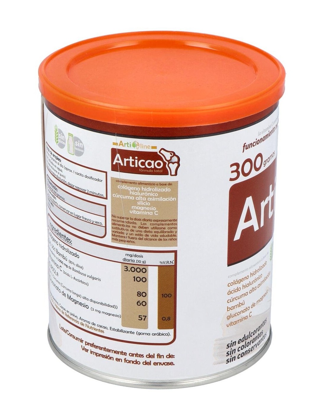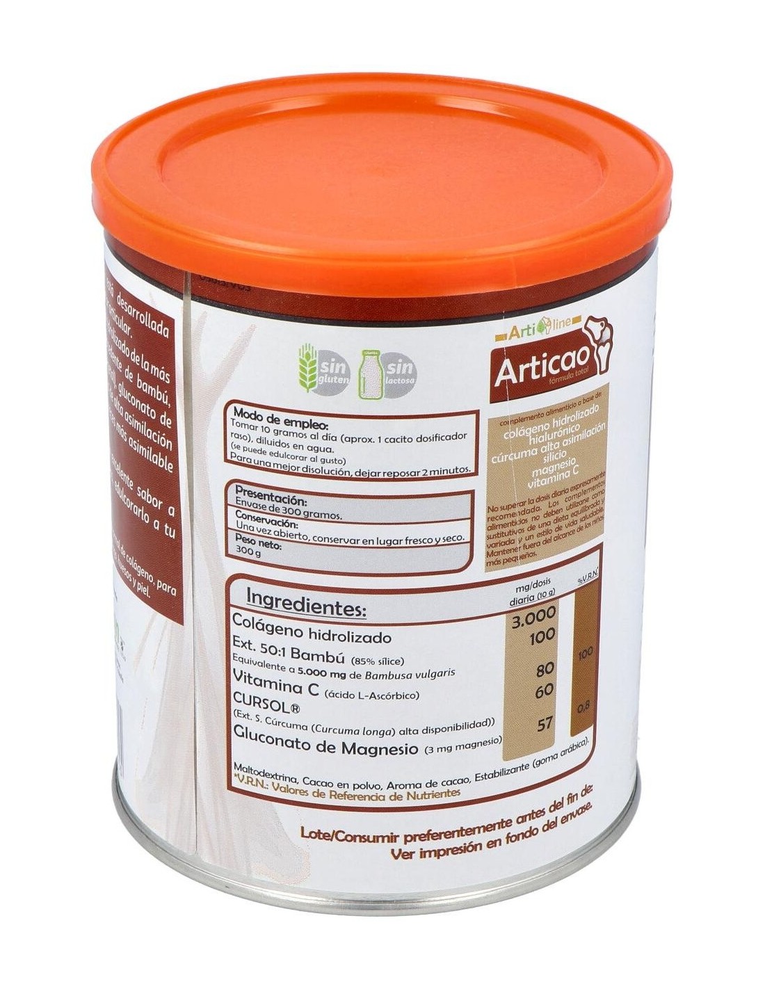 Complemento alimenticio con sabor a chocolate que ayuda a mejorar el bienestar articular. Elaborado con una fórmula total de Articolag, desarrollada utilizando colágeno hidrolizado de la más alta calidad, junto a silicio procedente de bambú, ácido hialurónico (de origen vegetal), gluconato de magnesio, vitamina C y cúrcuma de alta asimilación (cursol®), cuya curcumina es 12 veces más asimilable que la curcumina tradicional. La vitamina C contribuye a la formación normal de colágeno, para el funcionamiento normal de cartílago, huesos y piel. Se puede edulcorar al gusto.