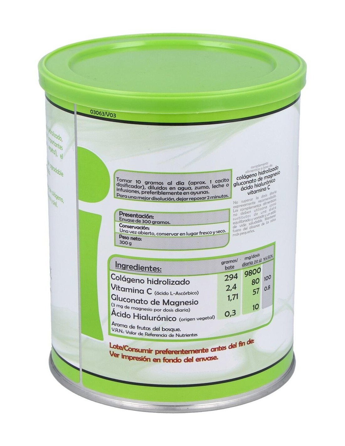 9.800 MG DE COLÁGENO HIDROLIZADO DE ALTA ASIMILACIÓN, 80 MG DE VITAMINA C (ÁCIDO L-ASCÓRBICO), 57 MG DE MAGNESIO, 10 MG DE ÁCIDO HIALURÓNICO.