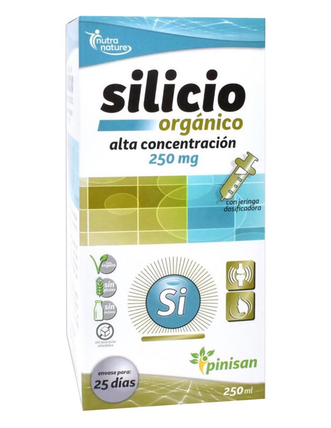 PINISANComplemento alimenticio a base de bambú, vitamina C y zinc con edulcorante. Con jeringa dosificadora. El silicio es un oligoelemento imprescindible en multitud de importantes procesos fisiológicos en los que interviene. La vitamina C contribuye a la formación de colágeno para el normal mantenimiento de tejidos como las articulaciones. Producto 100% vegano.