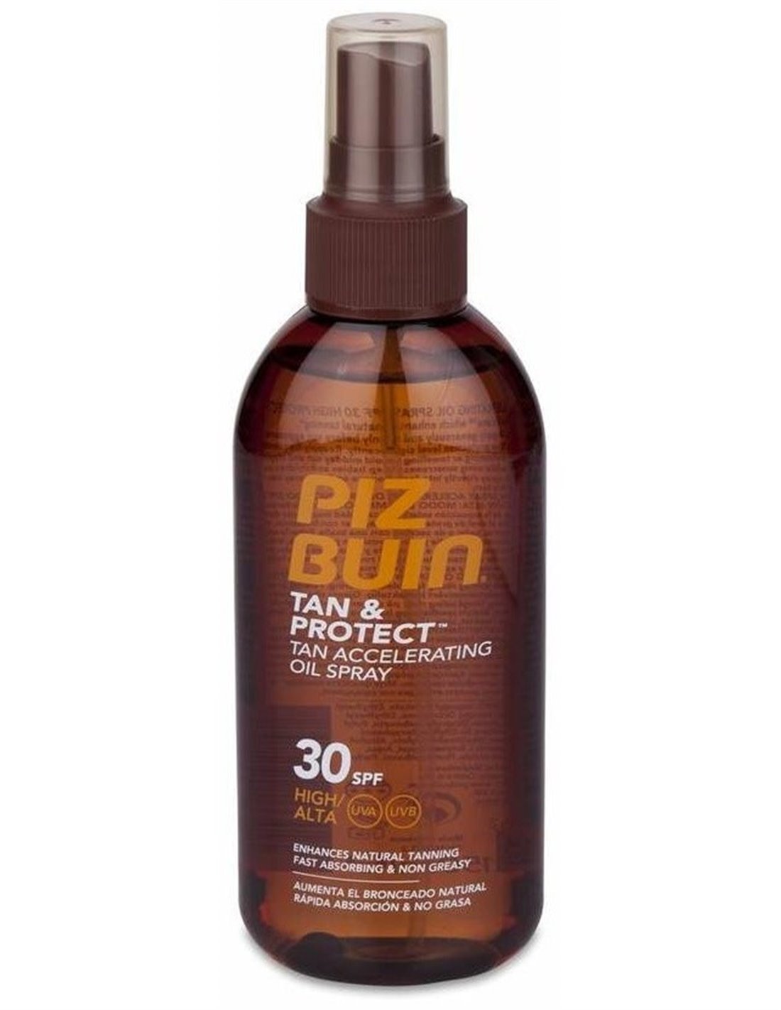 Piz Buin Tan & Protect Spray SPF30 150ml es un aceite en spray que ayuda a acelerar el bronceado, al mismo tiempo que protege la piel de los daños solares.