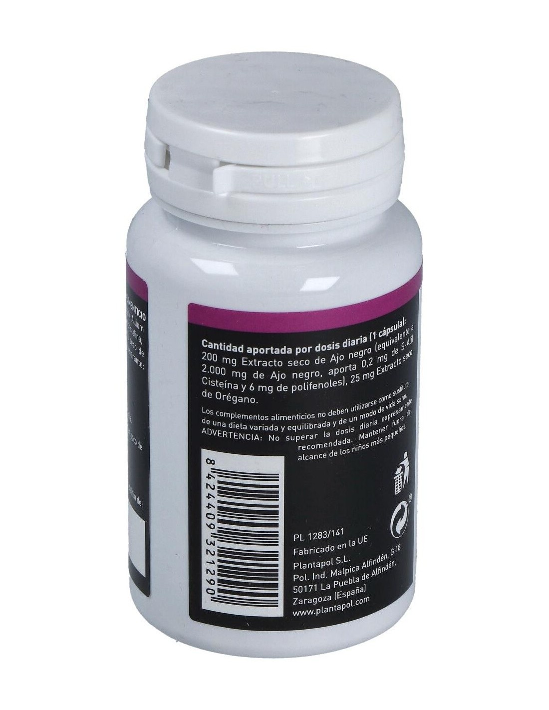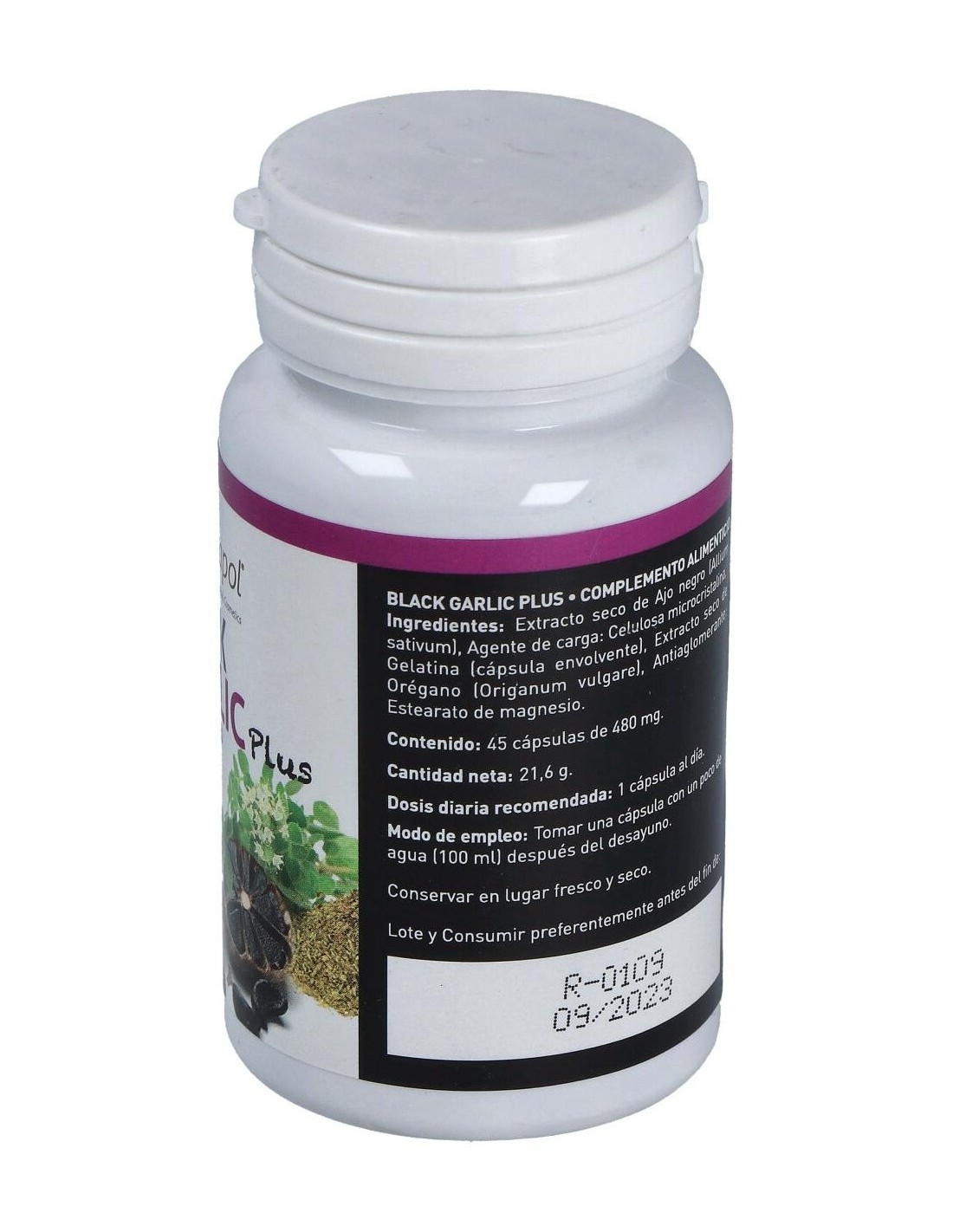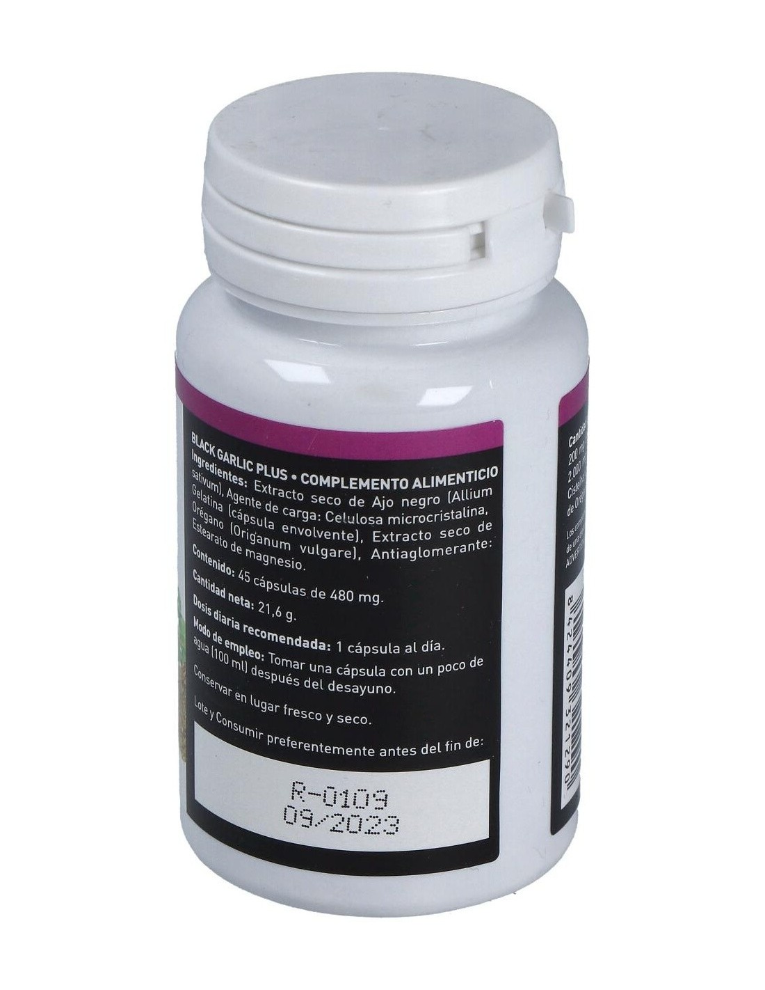 Complemento alimenticio a base de extracto de ajo negro 100% orgánico. El ajo es nutritivo, ayuda a reducir los niveles de colesterol, favorece el sistema inmunitario y favorece la reducción de la presión sanguínea. Tiene propiedades antiinflamatorias, contribuye a evitar resfriados, mejorar el asma y favorece la salud digestiva. Ayuda a quemar grasas y protege las funciones cardiovasculares. Formato en cápsulas vegetales, no dejan mal aliento. Con ingredientes de cultivos orgánicos.