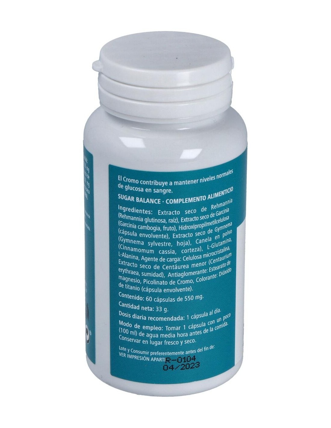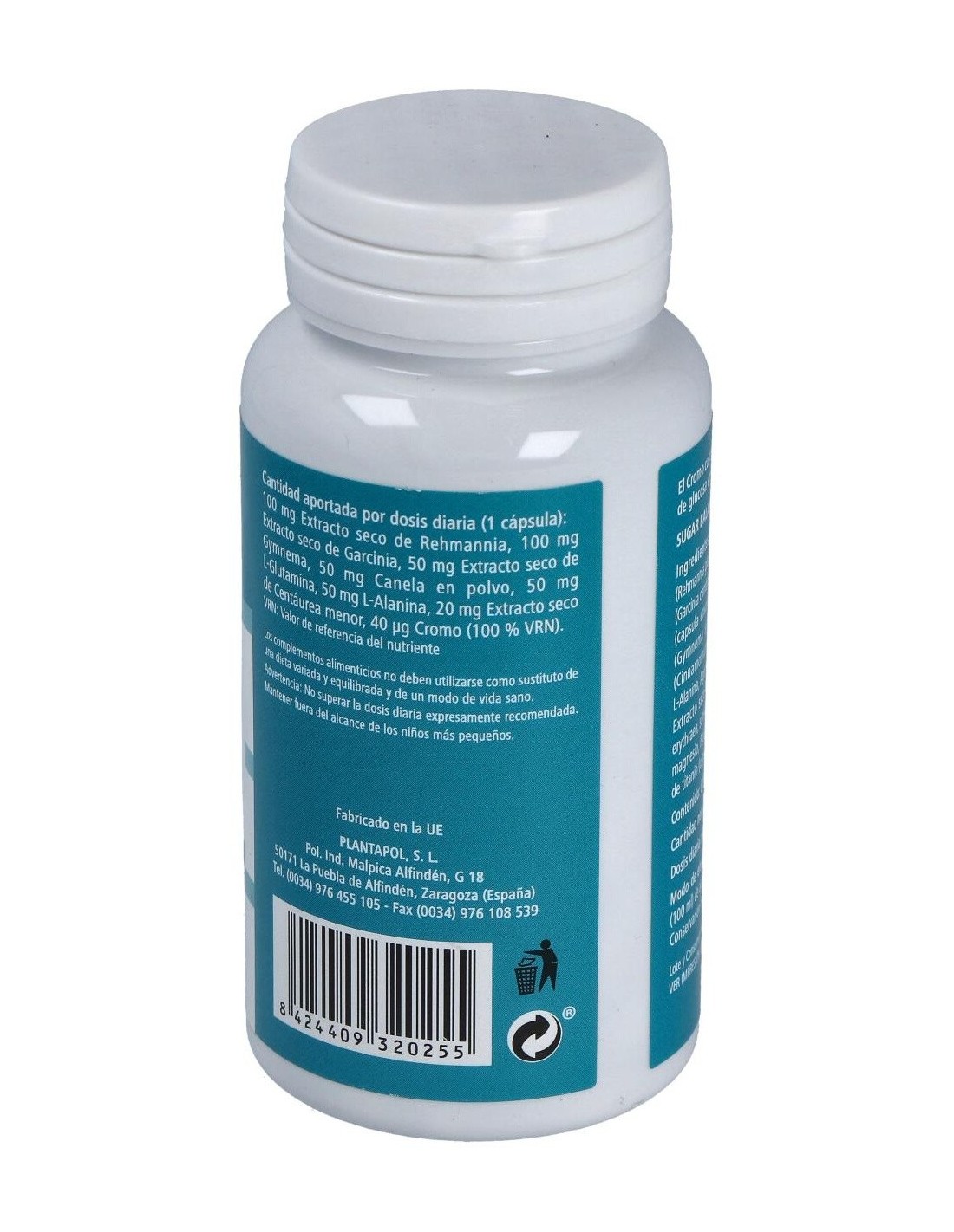 Rehmania glutinosa, Garcinia cambogia, Gymnema sylvestre, Centaura áspera, Canela, L-Glutamina, L-Alanina, Cromo.