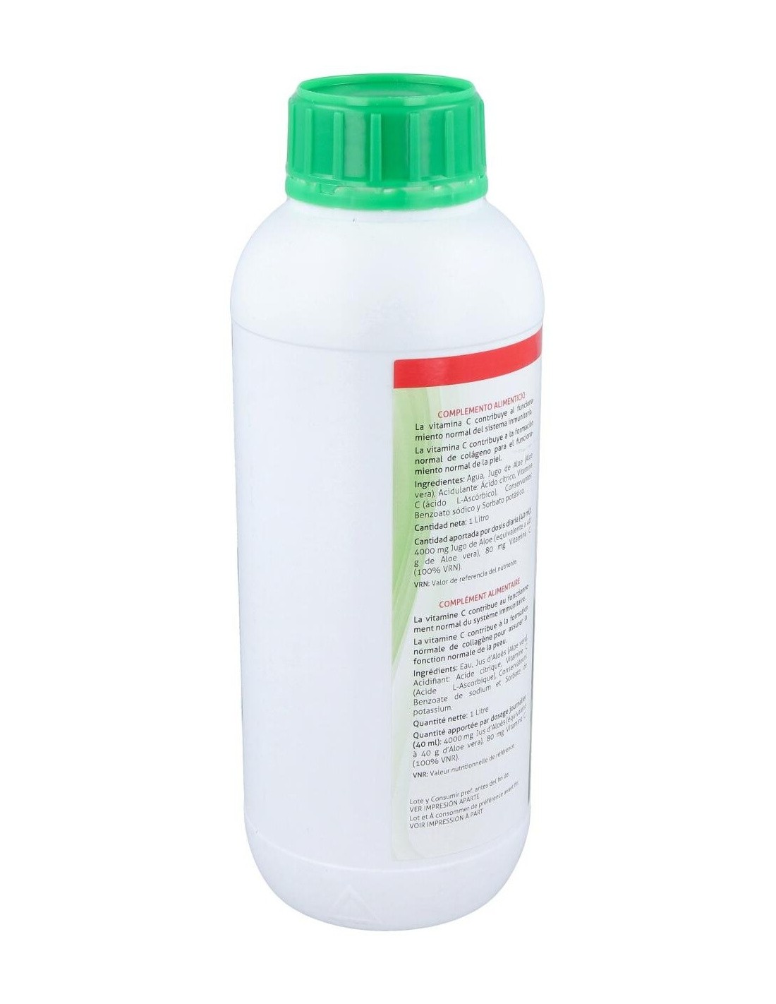 100% Jugo de Aloe Vera 994g, acidulante cítrico 2,5g, vitamina C 1,5g.