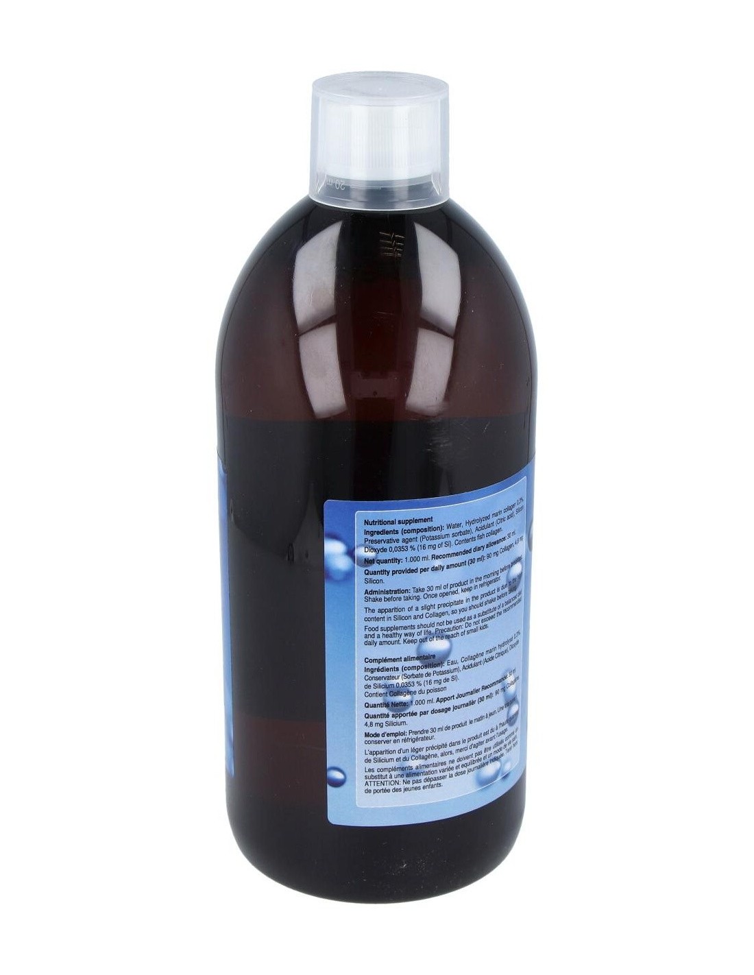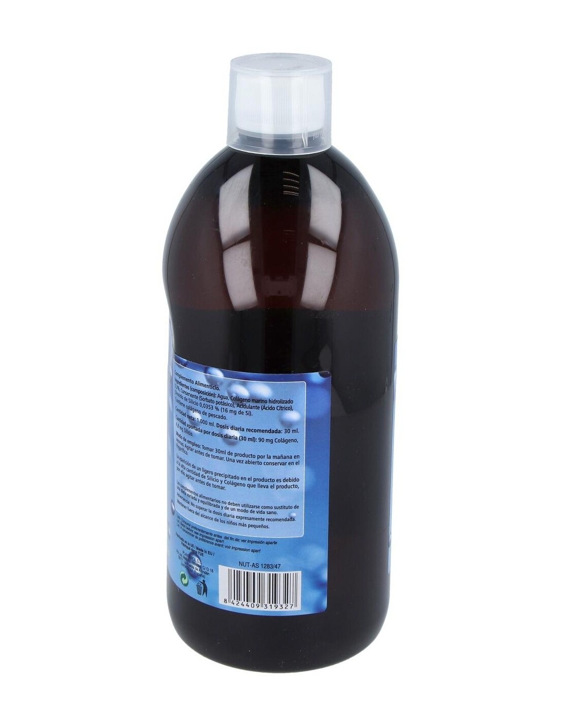 Colágeno marino hidrolizado: Dióxido de silicio (equivalente a 10.4 mg de Si): Agua (CSP): Acidulante (Ac. Cítrico): Conservador (Sorbato potásico)