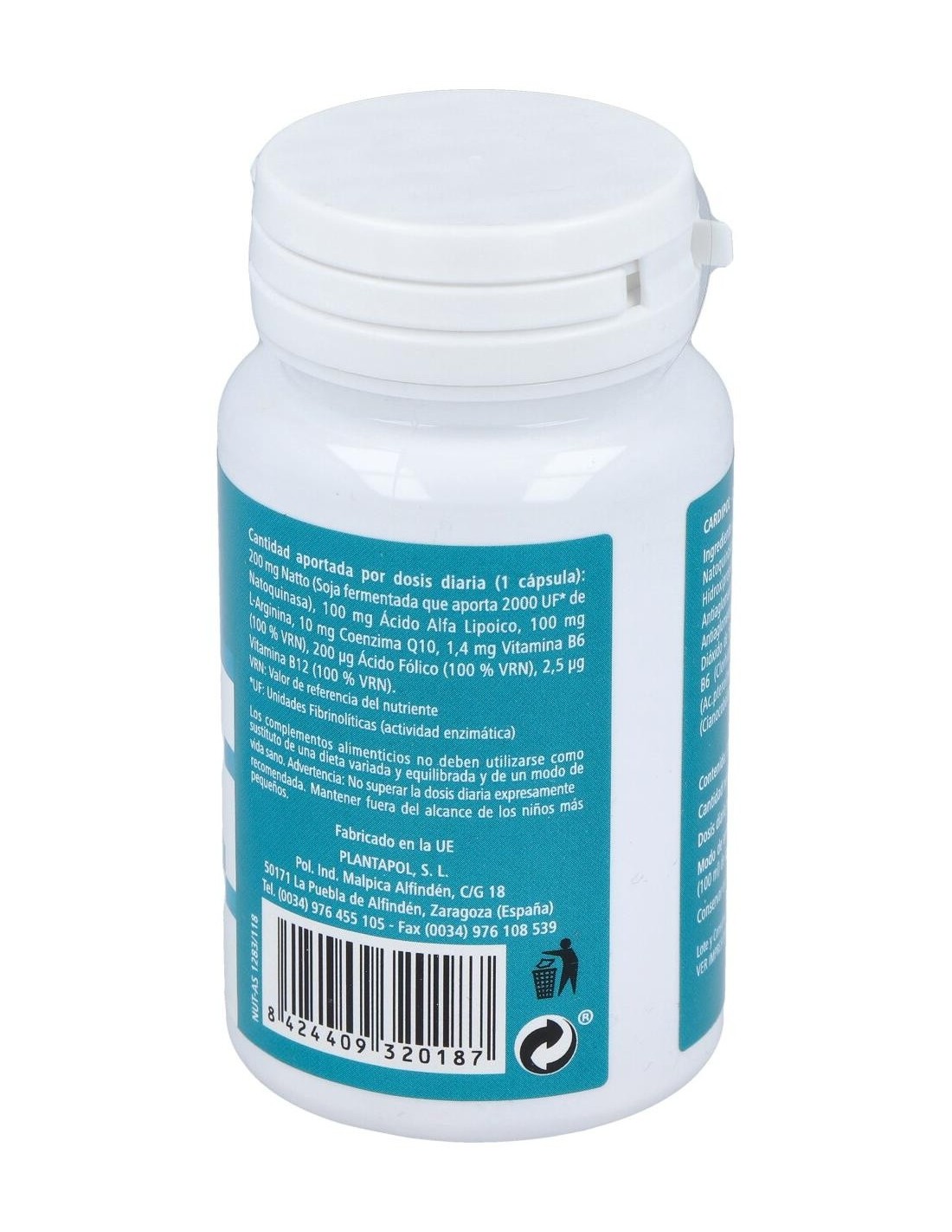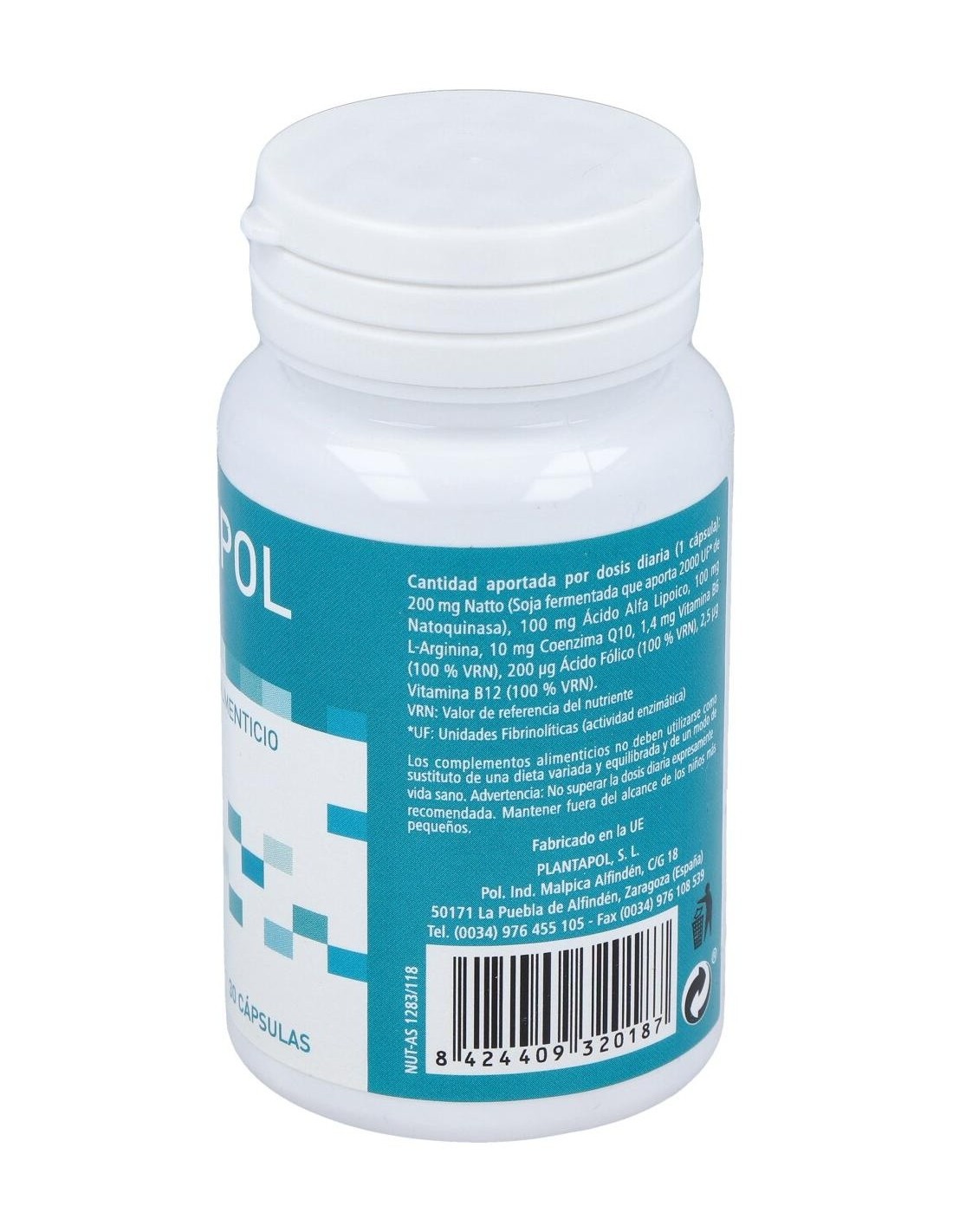 Natto (conteniendo Natoquinasa), Ac. Alfa lipoico, L-Arginina Clorhidrato, Coenzima Q10, Dióxido de silicio, Antiaglomerante: Estearato de Magnesio, Vitamina B6, B12, Ácido Fólico. Hidroxipropilmetilcelulosa HPMC.