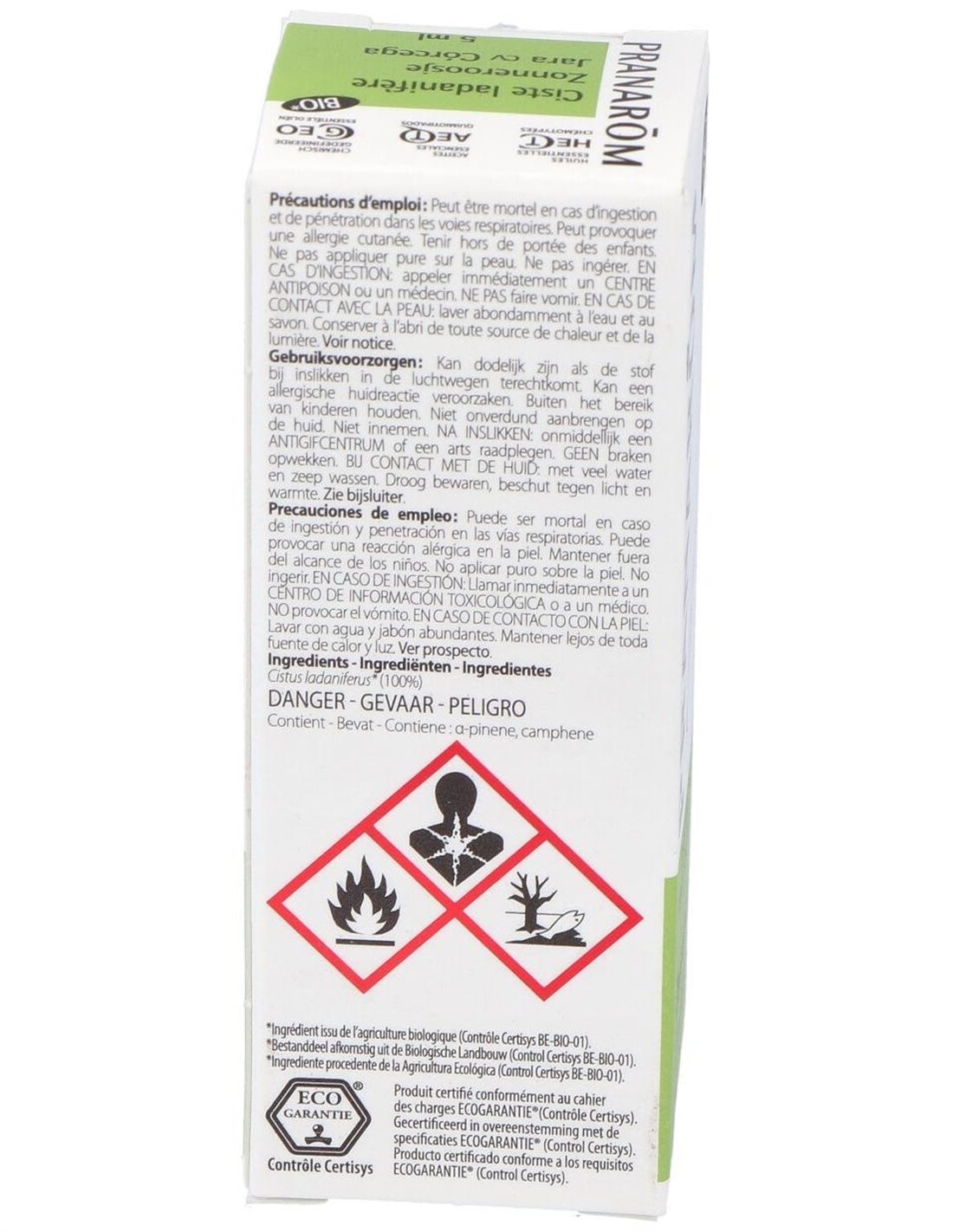 *Ingrediente procedente de la Agricultura Ecológica (Control Certisys BE-BIO-01) - BIO = Producto certificado conforme a los requisitos ECOGARANTIE® (Control Certisys).