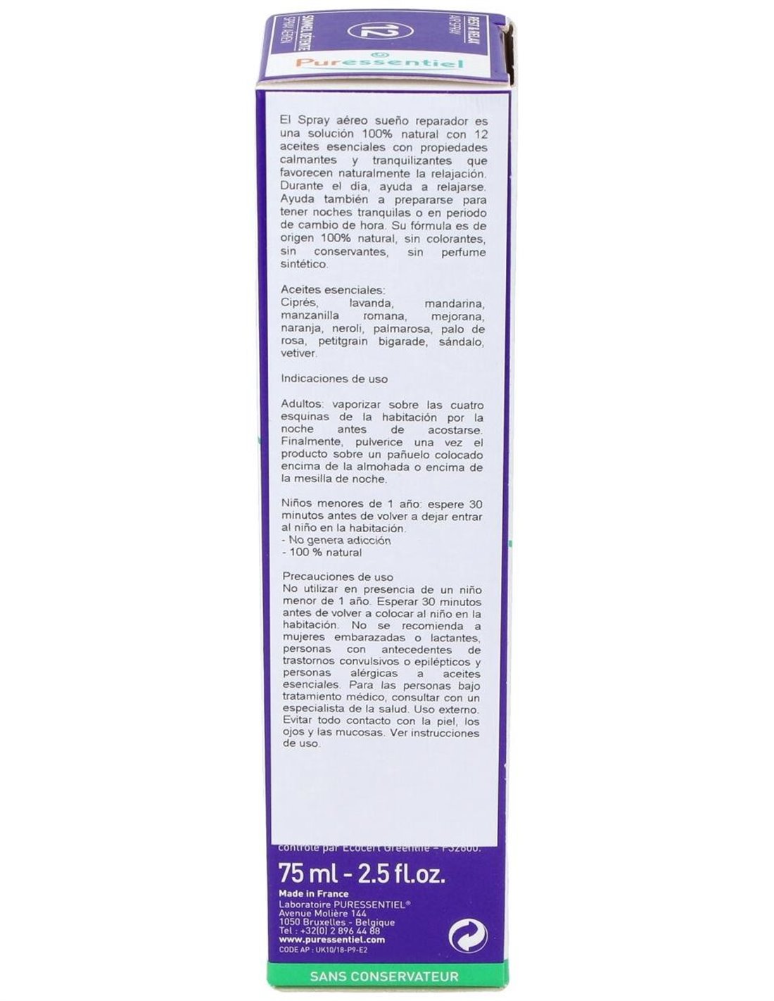 Spray Aereo Sueño Reparador Con 12 Ae 75Ml. de Puressentiel