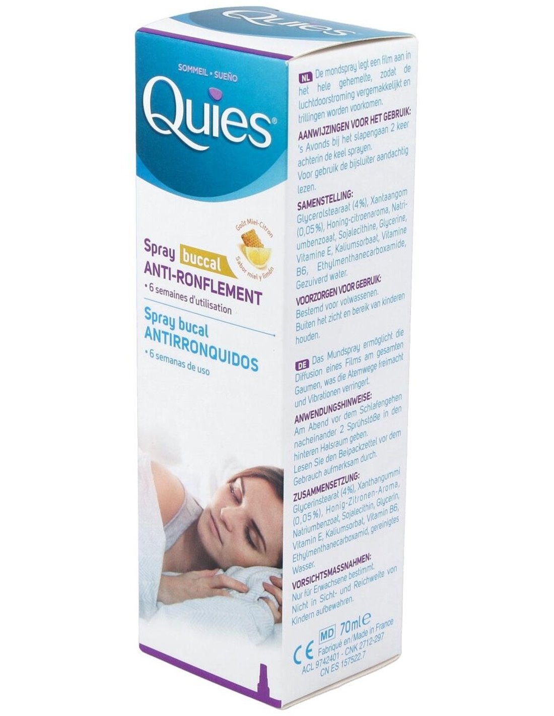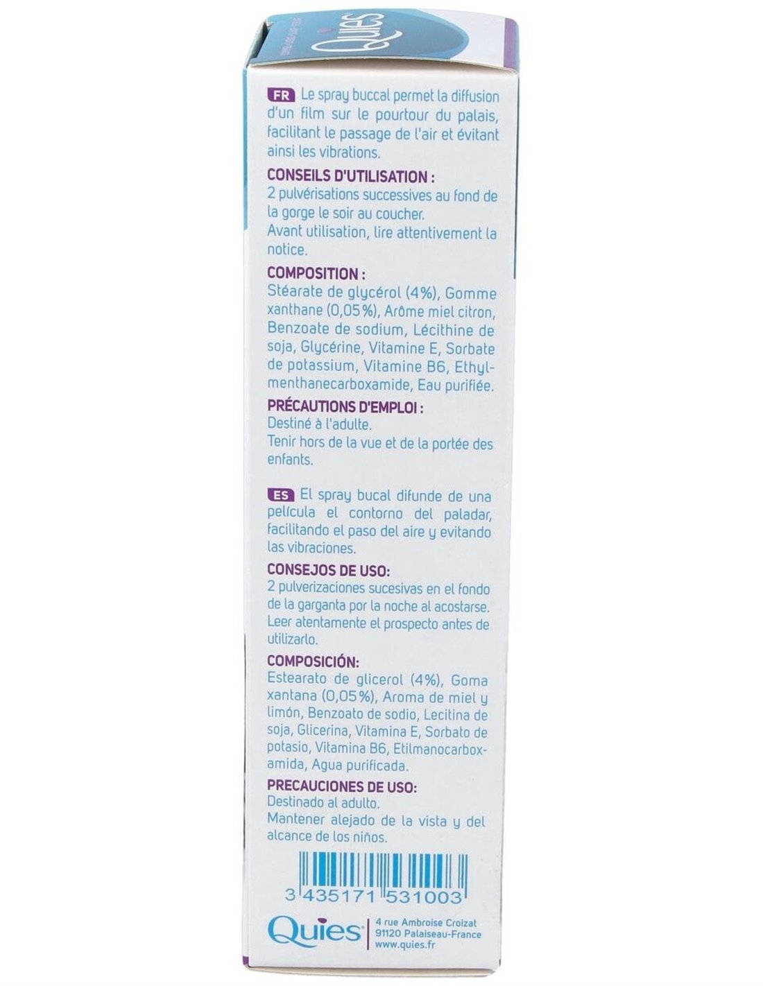 Spray útil en caso de ronquidos. Su fórmula ayuda lubrificar el velo del paladar para facilitar el paso del aire y evitar las vibraciones. Los activos ayudan a mantener una humedad óptima del fondo de la garganta, a lo largo de la noche.