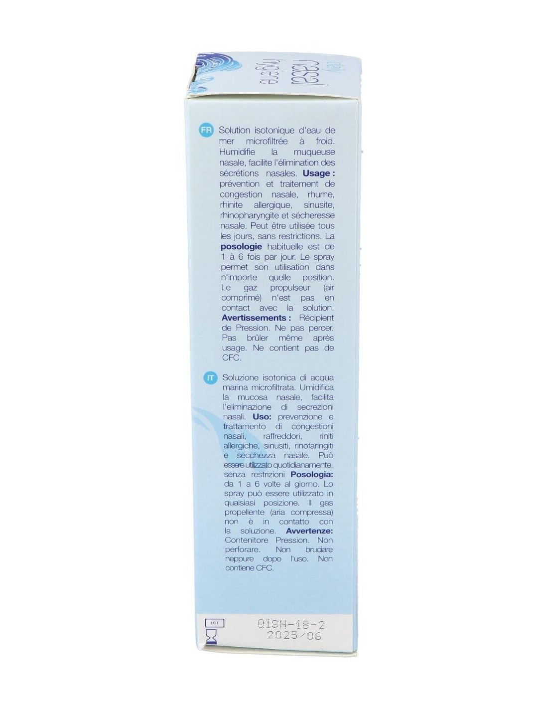 Solución en spray para lavado nasal. Indicado para la prevención y tratamiento de congestión nasal, resfriados, rinitis alérgica, sinusitis, rinofaringitis y sequedad nasal. Apto a partir de 6 años.