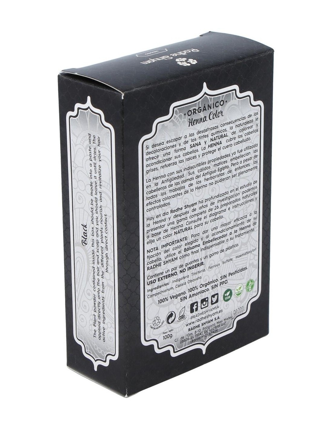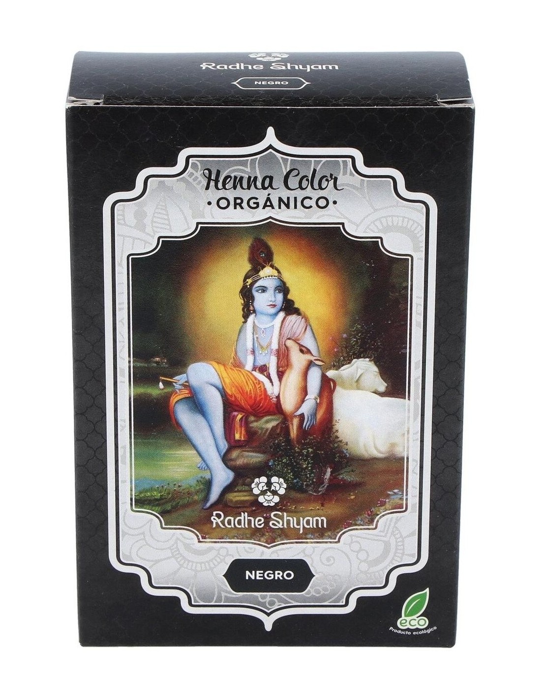 Radhe Shyam Henna color negro es un exclusivo tinte natural, sin químicos en su composición, que ofrece todas las propiedades de la naturaleza para colorear tu cabello. Cubre las raíces grises, refuerza la fibra y protege el cuero cabelludo.