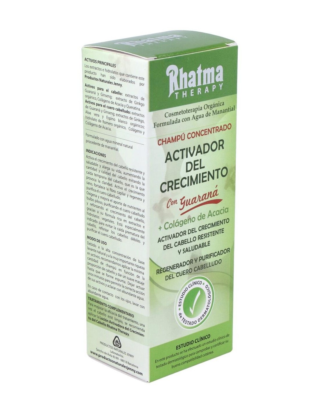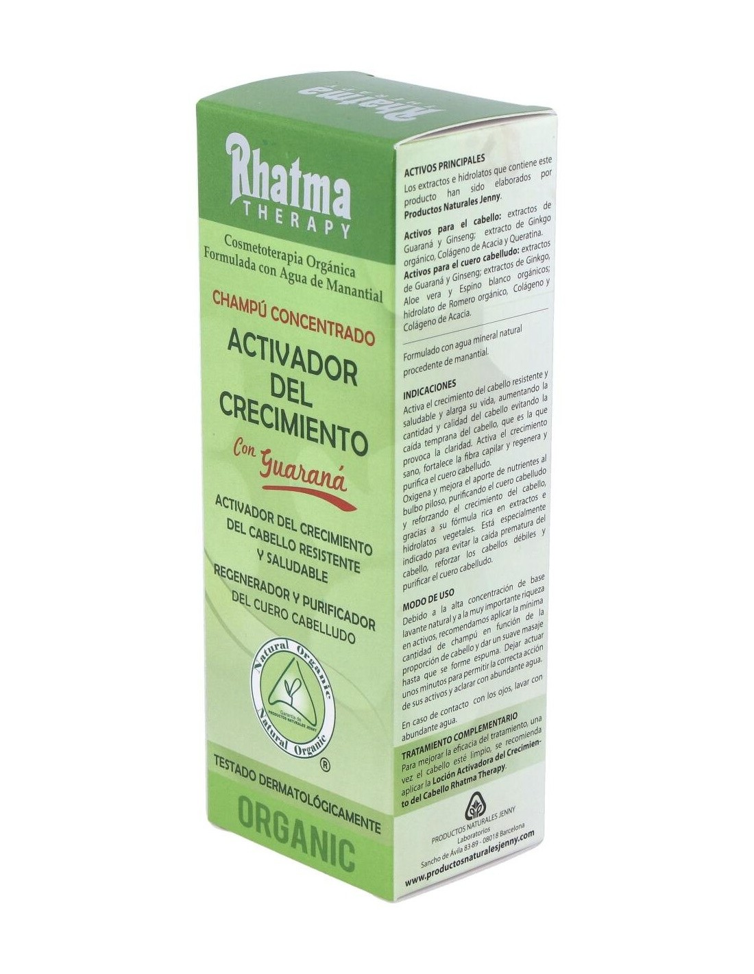 Rhatma champú activador crecimiento es un rico limpiador natural, formulado a base de guaraná, que consigue sanear y reparar los cabellos débiles o quebradizos. Regula y controla la caída de cabello, especialmente en determinadas épocas del año o tras el cepillado, para que se vuelva más resistente y fortalecido.