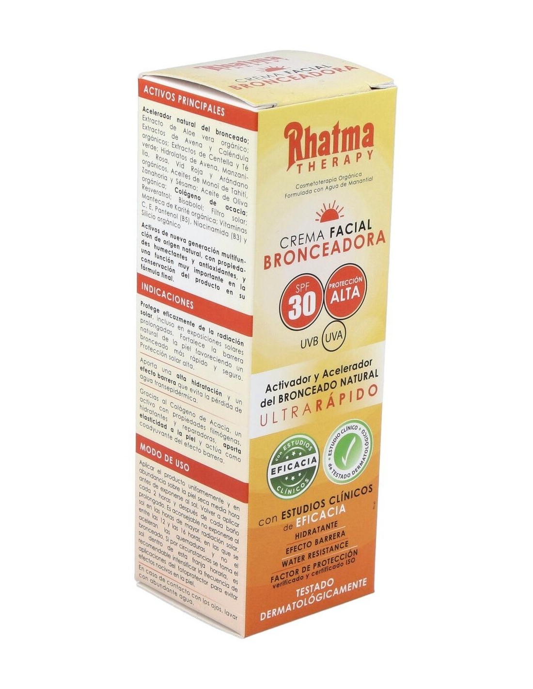 RHATMACrema facial bronceadora que fortalece la barrera natural de la piel favoreciendo un bronceado más rápido y seguro. Protección solar alta, factor 30.