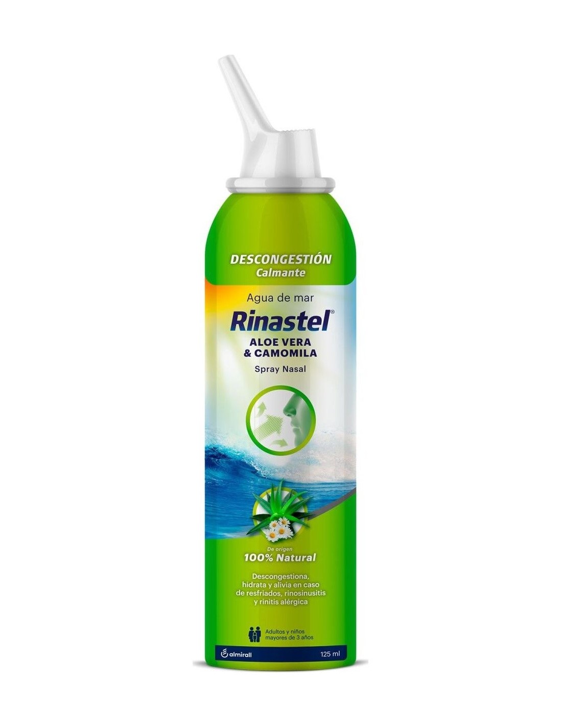 RINASTEL"DescripciónRinastel | Rinastel Aloe Vera & Camomila Spray Nasal 125 MlRinastel Aloe Vera & Camomila Spray Nasal 125 Ml es una solución hipertónica de Agua de Mar 100% natural que contiene extractos acuosos de Aloe Vera y Camomila. Colabora a descongestionar y relajar las cavidades nasales mientras alivia los síntomas del resfriado.