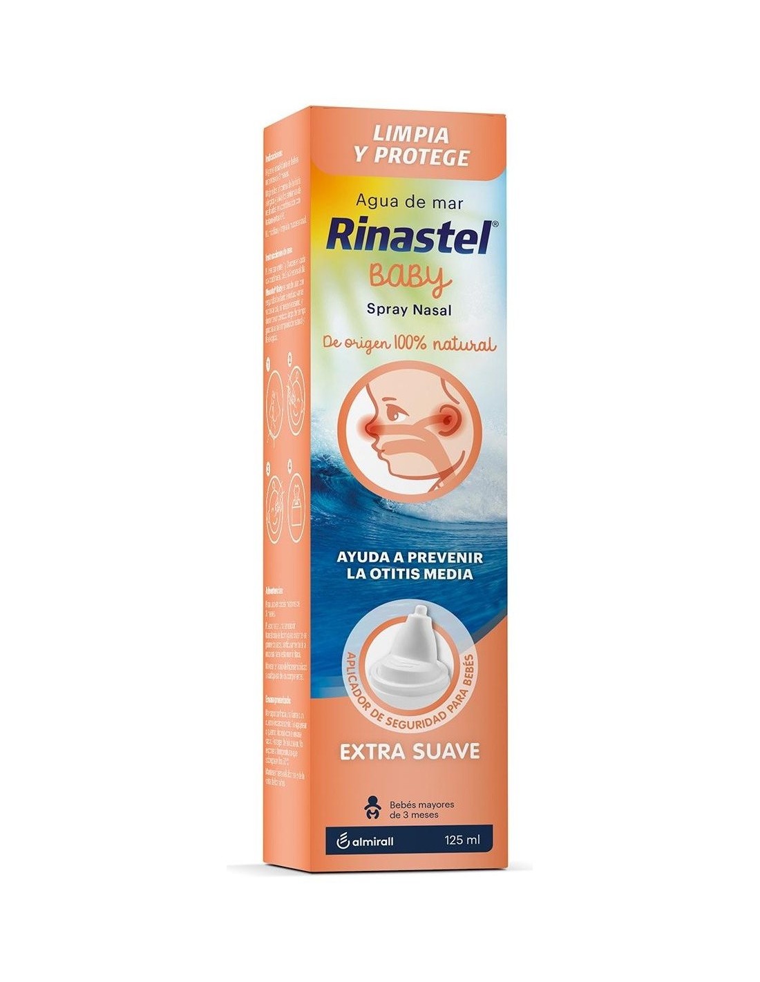 RINASTELSpray nasal con Xilitol, de origen 100% natural, para bebés a partir de 3 meses para la limpieza y protección diaria de las fosas nasales. Ayuda a mejorar la calidad del sueño y a respirar mejor mientras comen.