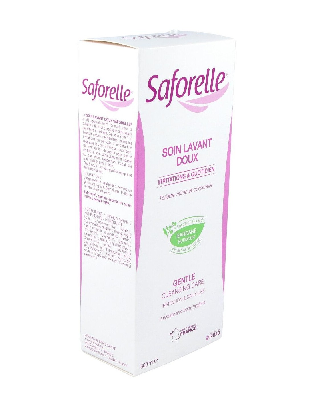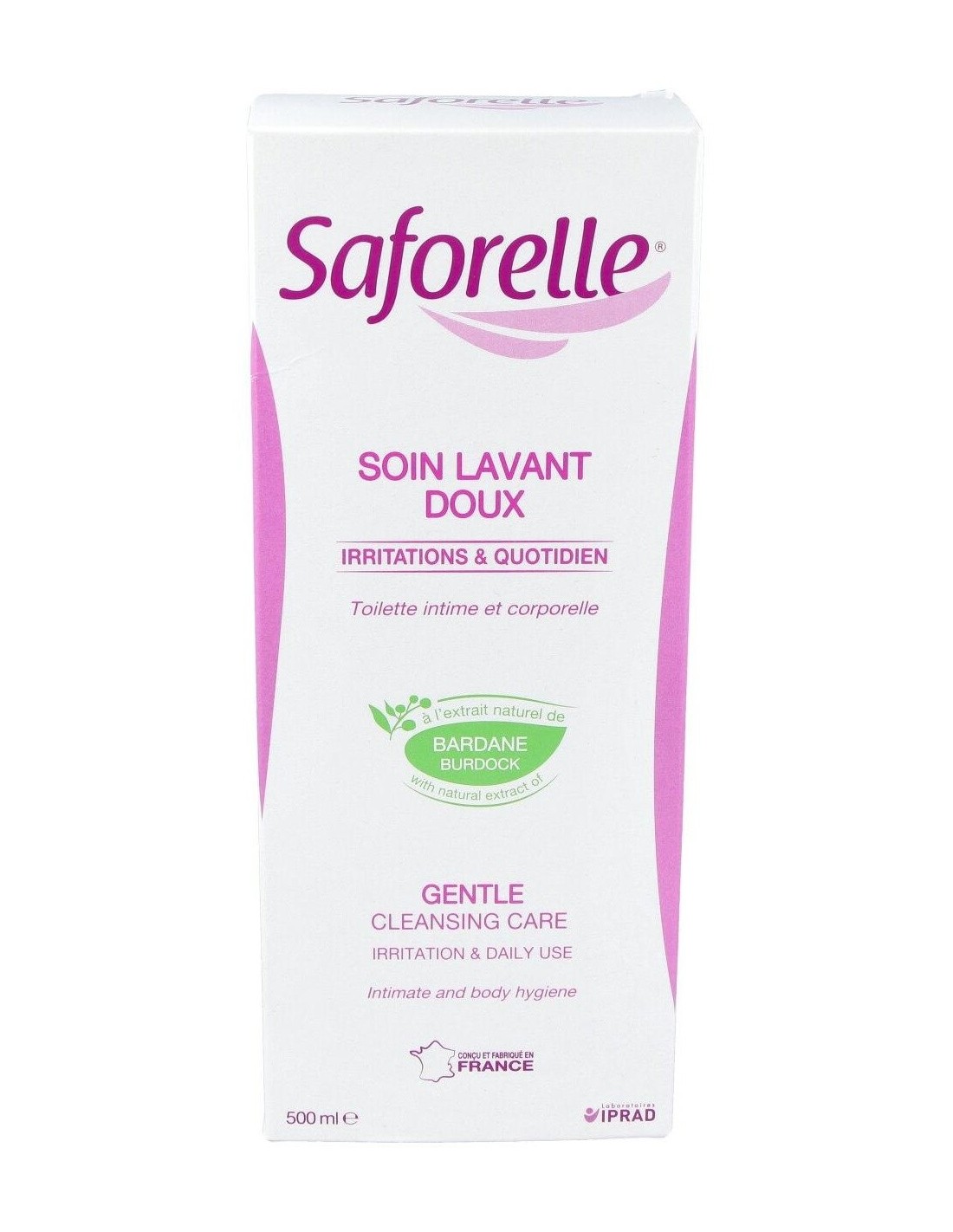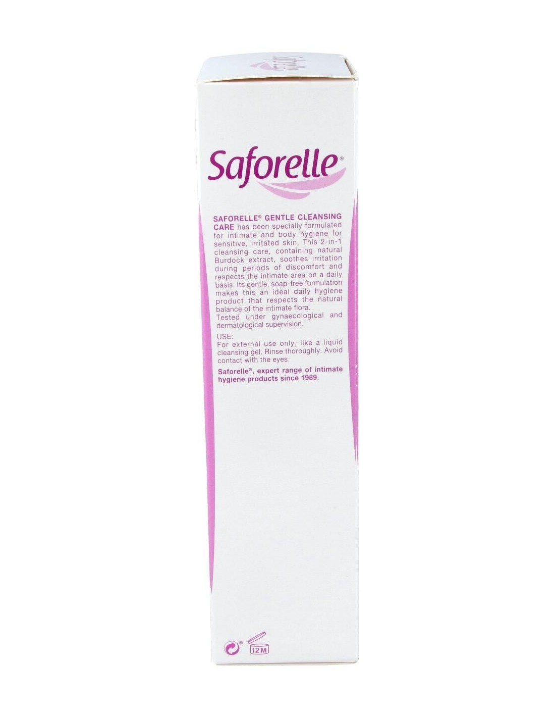 Saforelle gel íntimo te protegerá la piel de cualquier irritación, picor o rojeces. Es perfecto para todo tipo de piel, sobre todo para pieles sensibles o atópicas ya que limpia con total suavidad la zona y reduce la sensación de malestar, aliviando las irritaciones. Está enriquecido con una fórmula sin jabón a base deBardana que contiene propiedades calmantes y suavizantes.