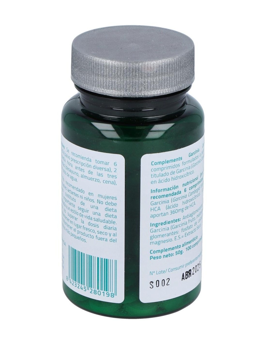 Antiaglomerante: celulosa: E.S. Garcinia cambogia (Garcinia fruto, maltodextrina): antiaglomerante: calcio fosfato, estearato de magnesio.