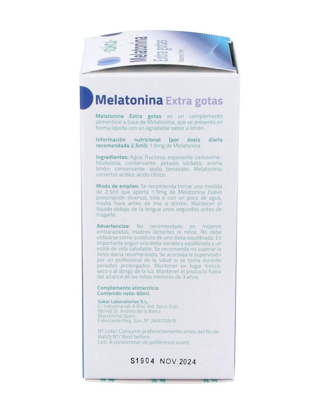 Sakai Melatonina Extra Gotas 60ml es un complemento alimenticio a base de melatonina. Indicado para combatir problemas de insomnio.