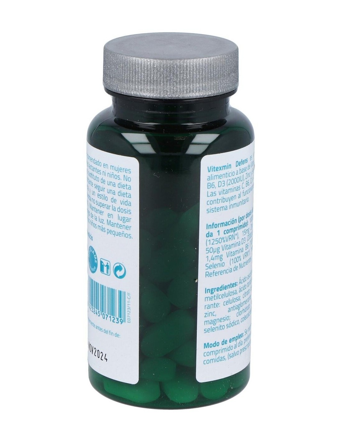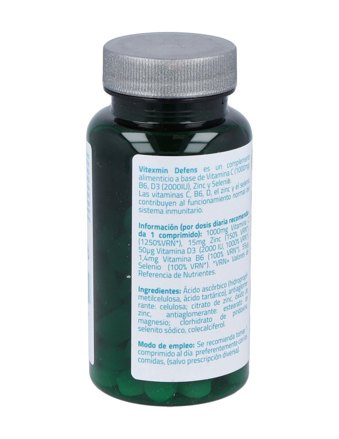 Ácido ascórbico (hidropropilmetilcelulosa, ácido tartárico), antiaglomerante: celulosa: citrato de zinc, óxido de zinc, antiaglomerante: estearato de magnesio: clorhidrato de piridoxina, selenito sódico, colecalciferol.