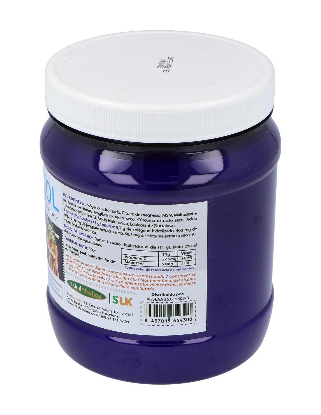 SALUDALKALINAColágeno enriquecido con una exclusiva fórmula a base de regenerantes articulares y musculares (Colágeno, Magnesio, Ácido hialurónico y MSM) y antiinflamatorios (Cúrcuma y Jengibre). Colágeno enriquecido con una exclusiva fórmula a base de regenerantes articulares y musculares (Colágeno, Magnesio, Ácido hialurónico y MSM) y antiinflamatorios (Cúrcuma y Jengibre).
