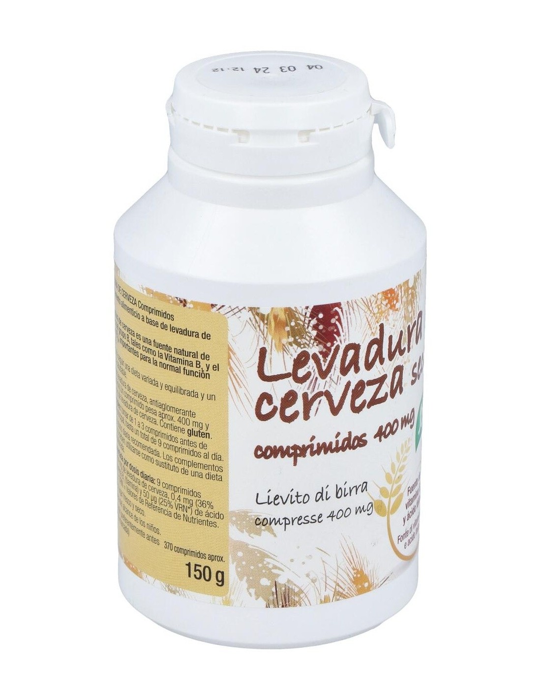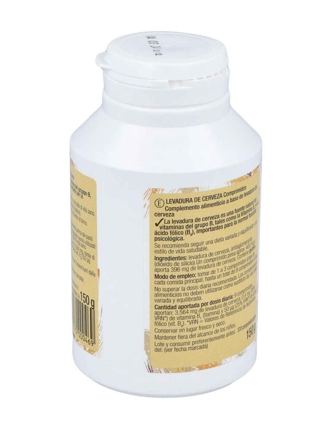 3.564 mg de levadura de cerveza, 0,4 mg (36%VRN) de vitamina B1 (tiamina) y 50 µg (25% VRN) de ácido fólico (vitamina B9).