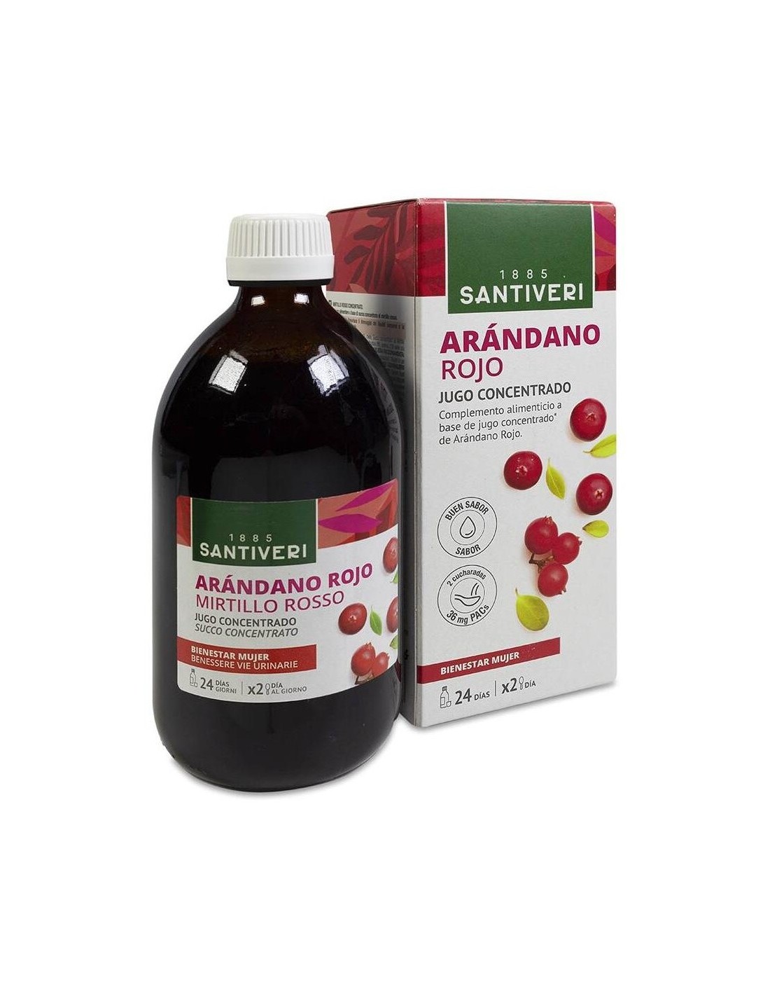 SANTIVERIComplemento alimenticio a base de jugo concentrado de arándano rojo, que puede actuar favorablemente en el drenaje de los líquidos corporales y la funcionalidad de las vías urinarias. Complemento alimenticio a base de jugo concentrado de arándano rojo, que puede actuar favorablemente en el drenaje de los líquidos corporales y la funcionalidad de las vías urinarias.
