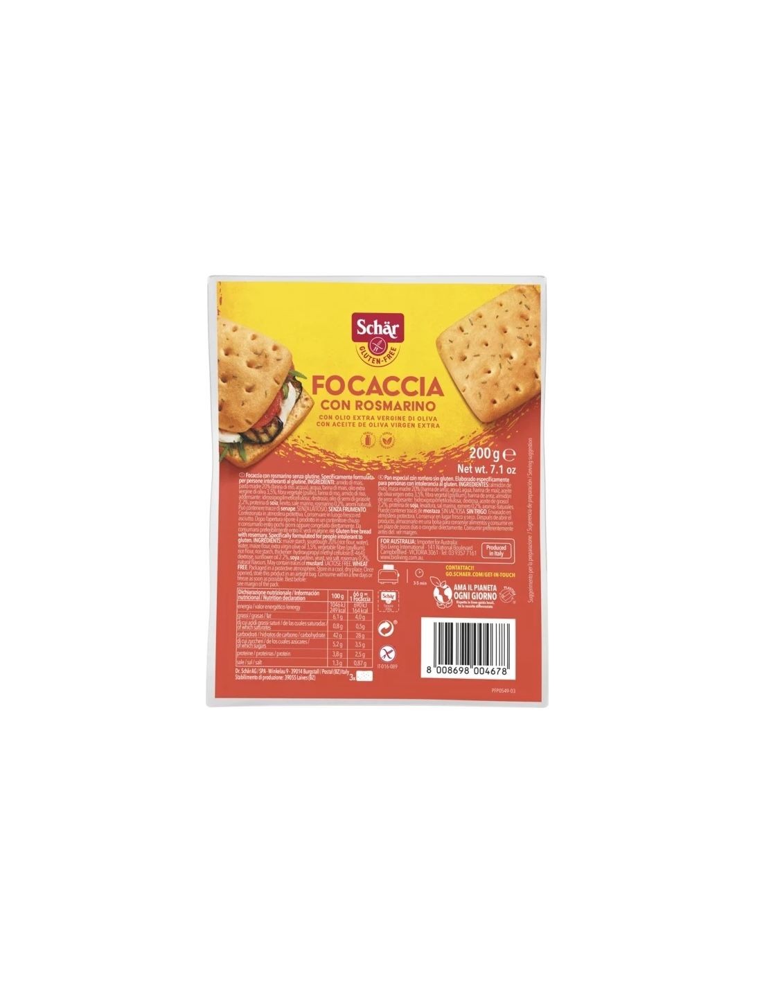 Pan Focaccia Con Romero  200 Gramos Sg** Schar