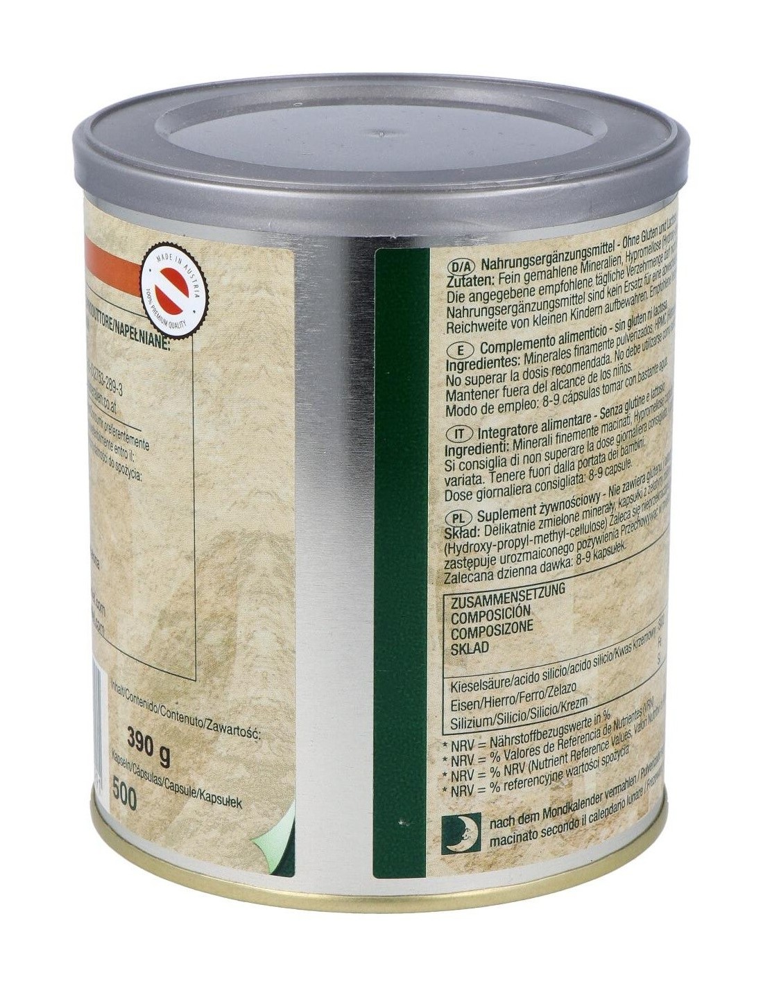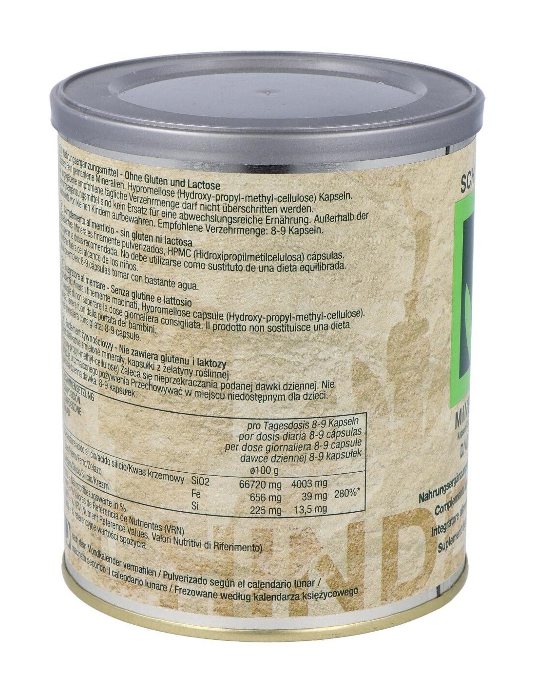 Complemento alimenticio con origen natural en cápsulas con ácido silicio y hierro que ayuda a proporcionar minerales y oligoelementos, que funciona como un complejo vitamínico para contribuye a fortalecer el organismo con la finalidad de mantener la vitalidad y energía del cuerpo para así poder afrontar el día día con fuerza, o para tener un extra de energía al hacer deporte.