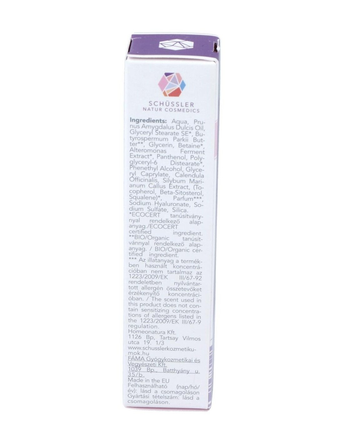 INCI: Aqua, Prunus Amygdalus Dulcis Oil, Gyceryl Stearate SE*, Butyrospermum Parkii Butter**, Glycerin, Betaine*, Alteromonas Ferment Extract*, Panthenol, Polyglyceryl-6 Distearate*, Phenethyl alcohol, Glyceryl Caprylate, Calendula Officinalis : Silybum Marianum Callus Extract, (Tocopherol, Beta-Sitosterol, Squalene)*, Parfum, Sodium Hyaluronate, Magnesium Stearate, Lactose, Sodium Sulfate, Silica.
