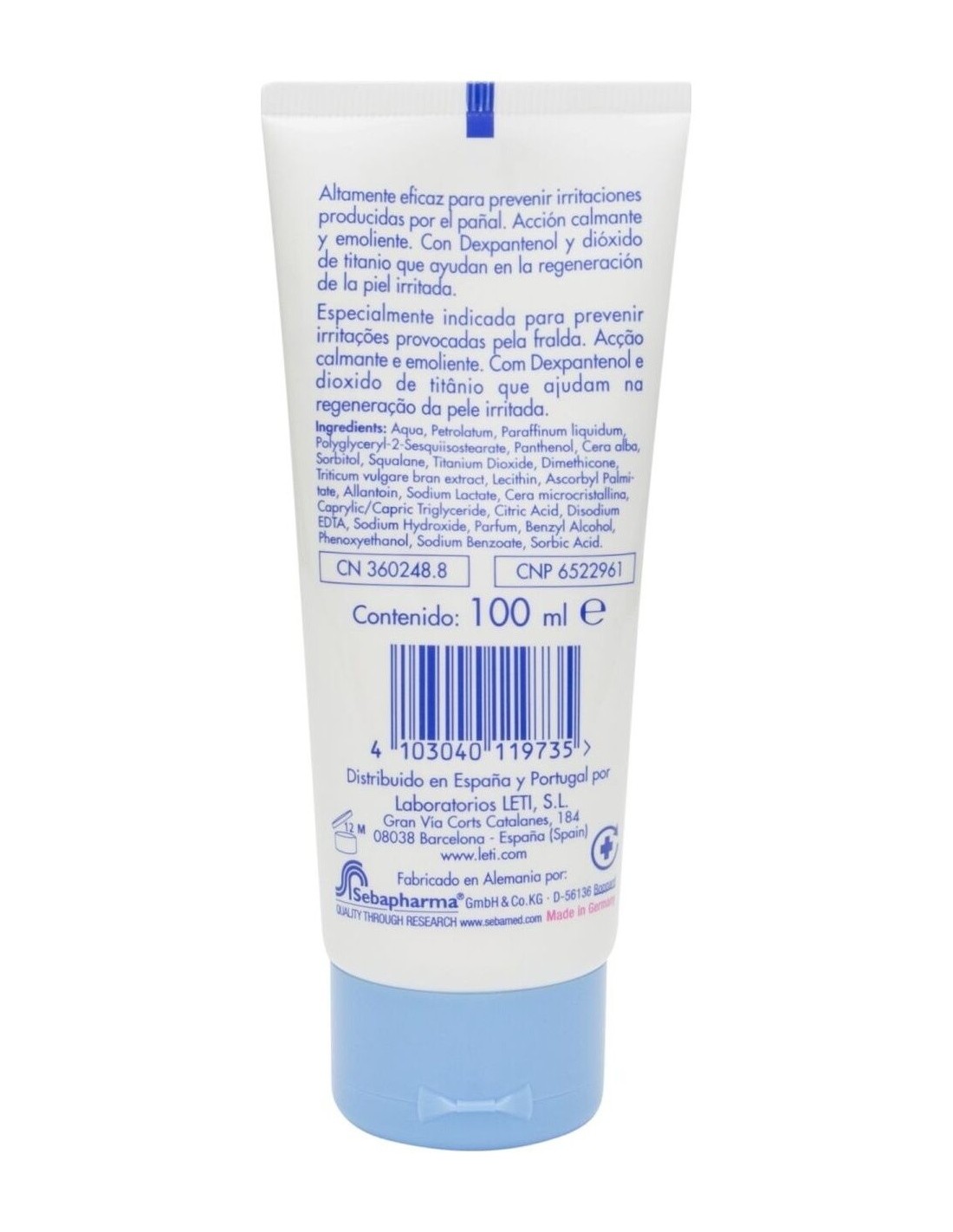 Proporciona un alivio eficaz y protección fiable frente a la dermatitis del pañal. El pantenol estimula el proceso de curación. El escualeno del vérnix proporciona el soporte lipídico y la protección necesarios. El dióxido de titanio forma una barrera protectora frente a sustancias agresivas que podrían provocar inflamación. El pH 5,5 normaliza el pH de la piel si está elevado por oclusión y el contacto con la orina y contribuye a la protección frente a microorganismos nocivos que pueden provocar superinfección de la piel dermatítica.