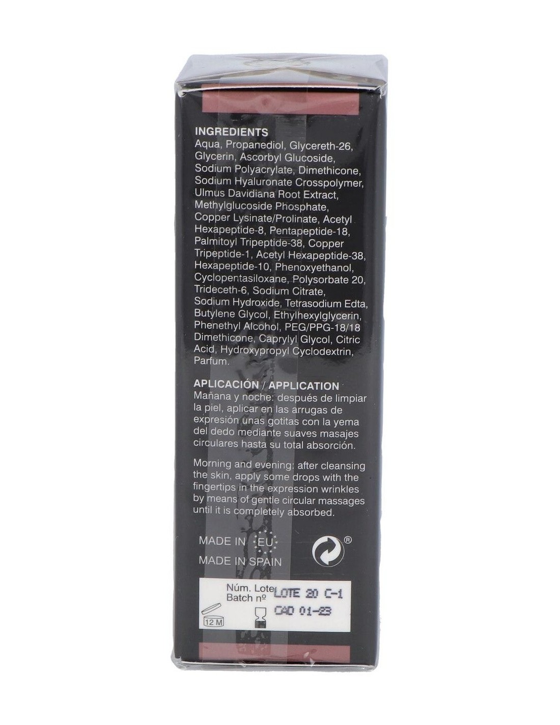 Tratamiento específico de las arrugas de expresión del rostro con péptidos biomiméticos. Hidrata, fortalece y devuelve a la piel un aspecto radiante y fresco.