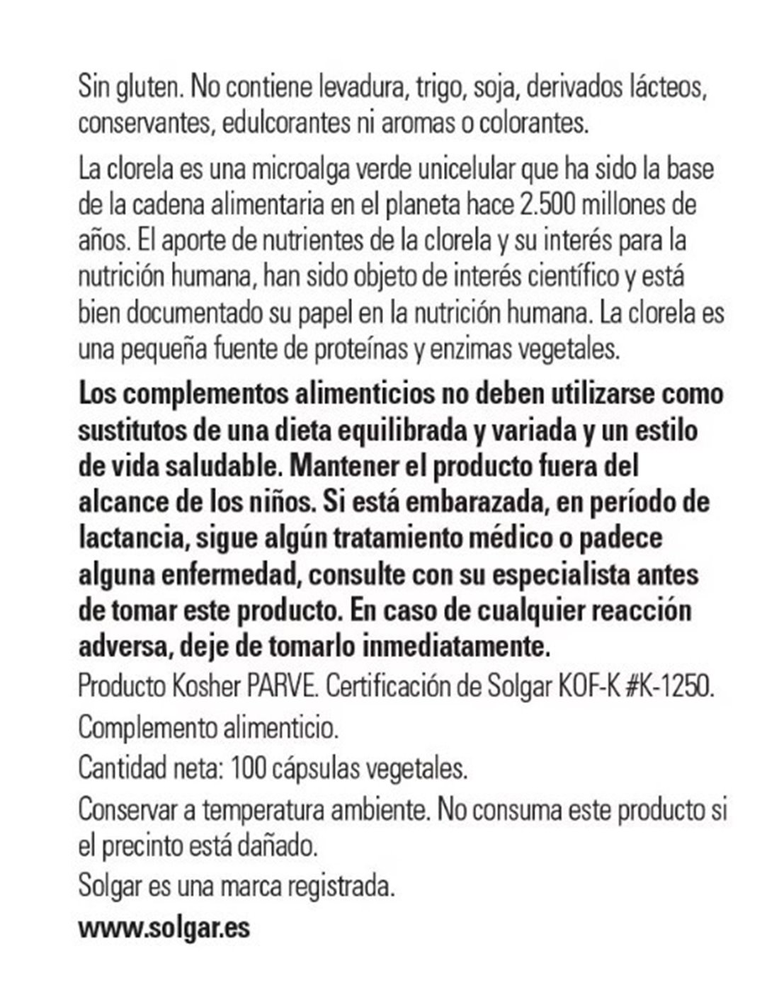 Clorella 520 mg  100 cápsulas vegetales Solgar