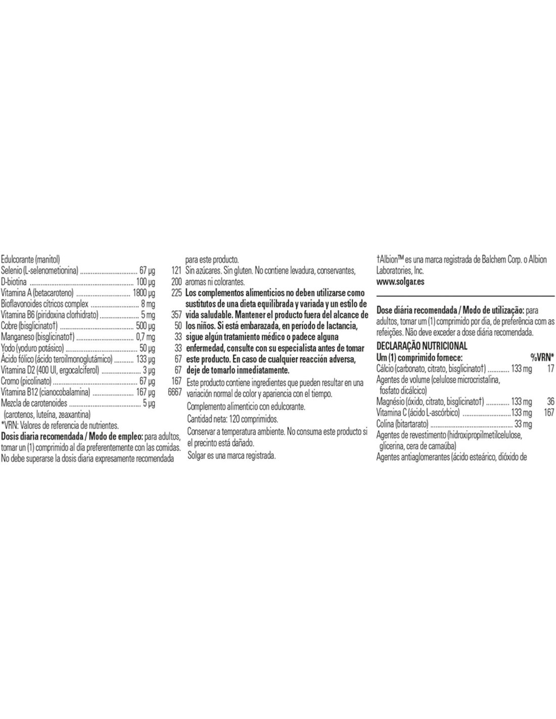 En colaboración con SOLGAR realizamos un constante esfuerzo para mantener estas fichas actualizadas. Para cualquier consulta póngase en contacto con nosotros.