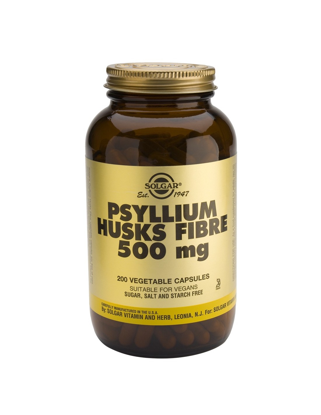 Fibra de Cáscara Psyllium 500 mg  200 cápsulas vegetales Solgar